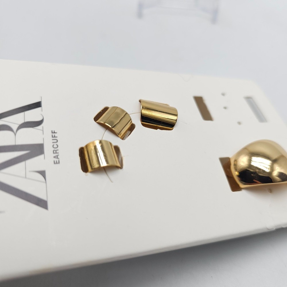 Ever thought your ears could use a little extra pizzazz? This Zara ear cuff set is here to save the day! With its sleek gold finish, it's like a superhero cape for your ears, minus the flying part. Just clip on and let your ears do the talking. • Set includes multiple ear cuffs • Sleek, modern design • Clip-on style for easy wear • Durable construction • Lightweight for comfort Slight bend in packaging. Missing one earring. As is. Slight bend in packaging. Missing one earring. As is. Condition: New With Defects Size: Womens One Size Features: Cuff Made in Unknown
