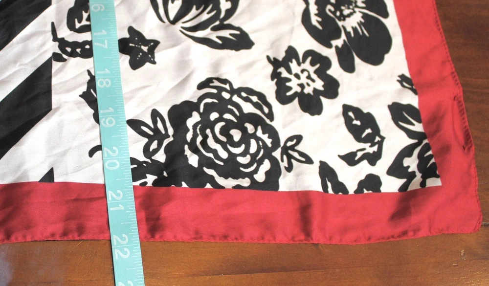 HomeZara Hand-Rolled Striped Floral Scarf 20x20 Red White Black