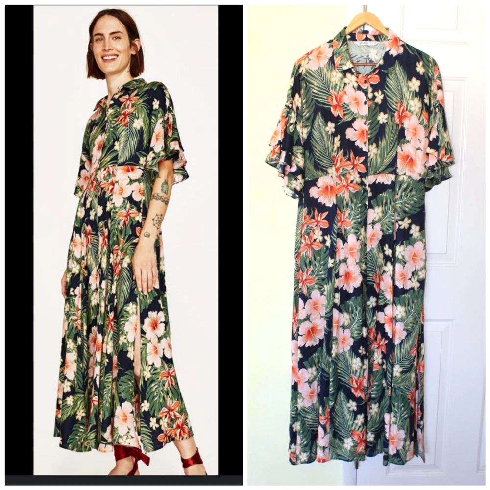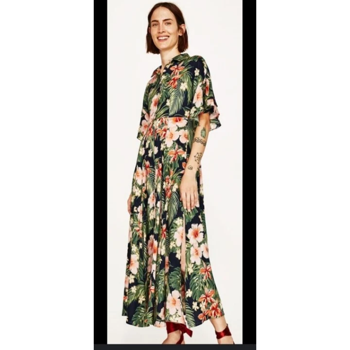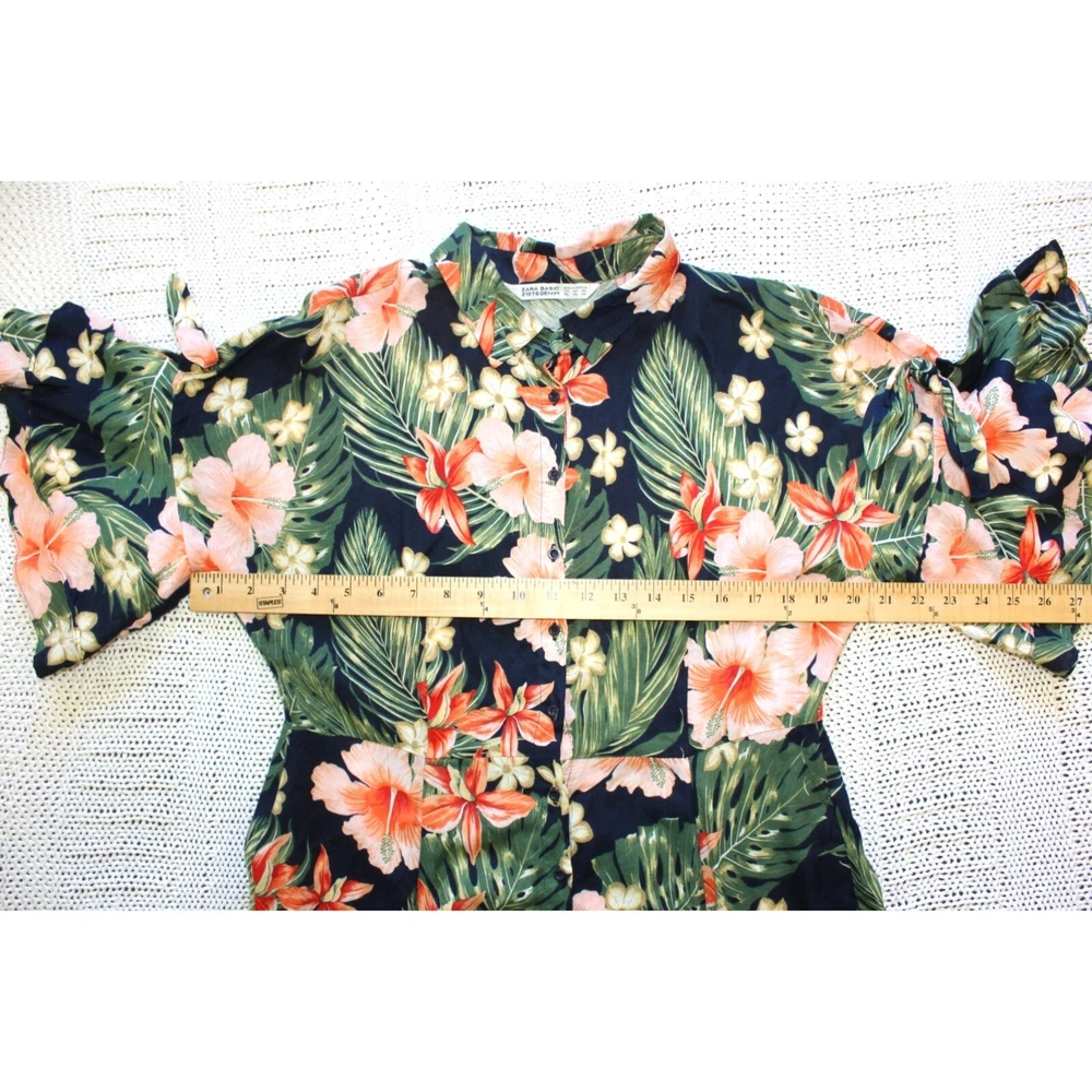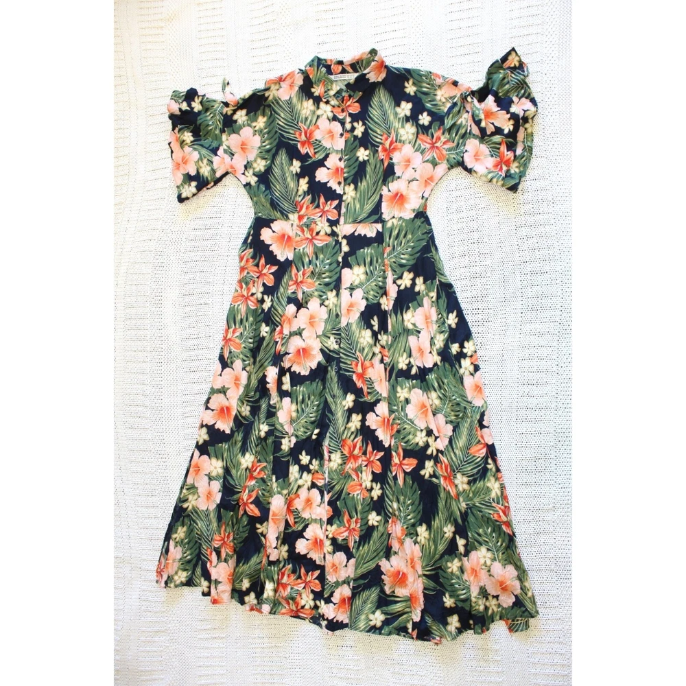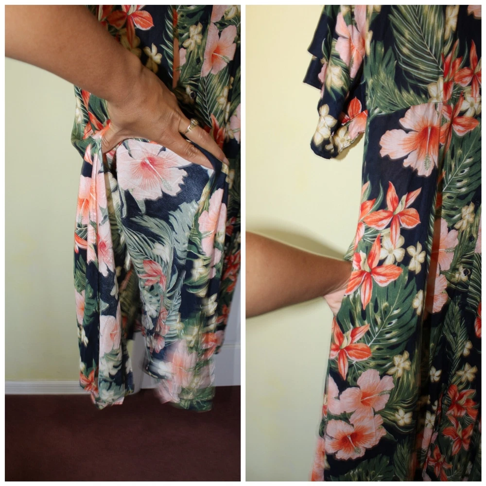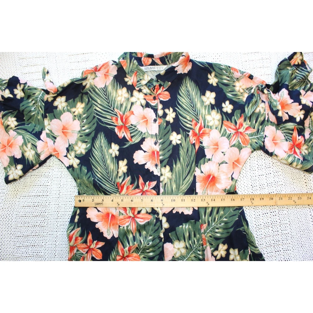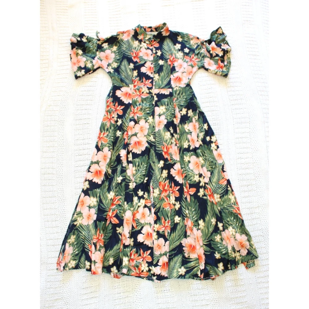 Excellent pre owned condition. Please look pictures for measurements. 100% Viscose Size: XL in US Button front Orange green and Black Hibiscus Flower