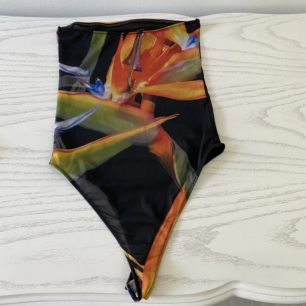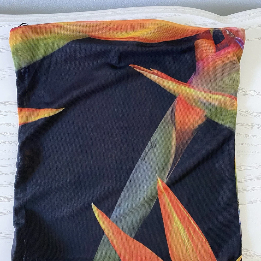 Sheer stretchy fabric Polyester/Elastane Approx measurements laying flat Pit to pit 12" Hips 12.5" Length 22"