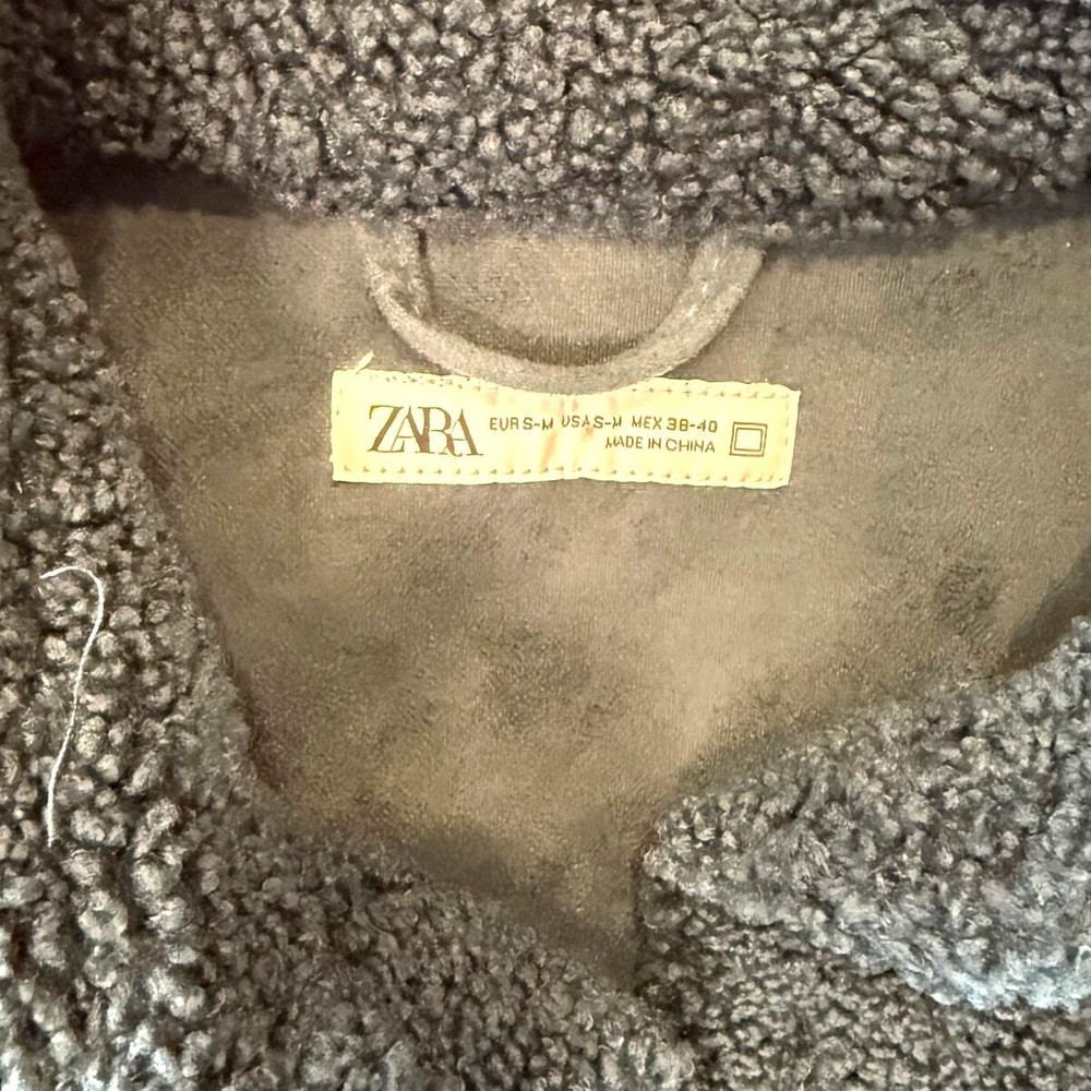 Zara Sherpa Men’s Buttoned Dark Green Jacket Size S/M 100% polyester