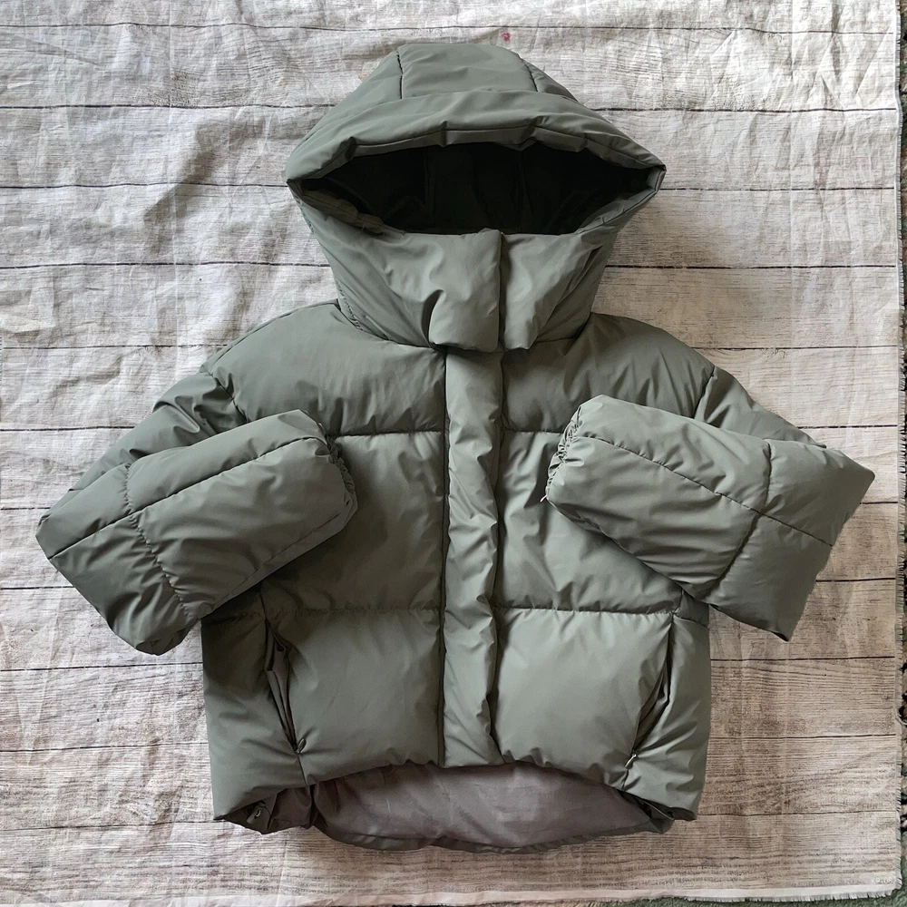 Zara Women’s Oversized Cropped Puffer Winter Coat Xs F1