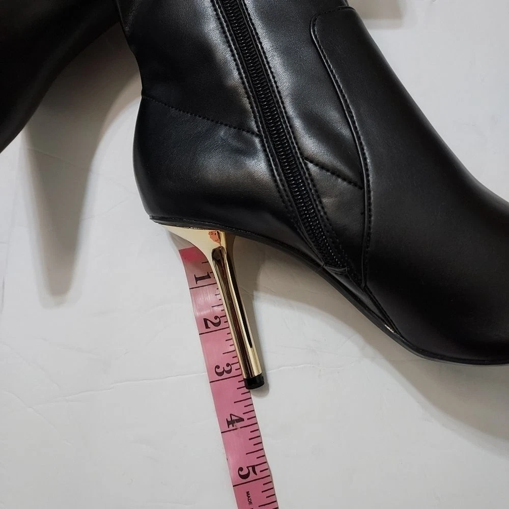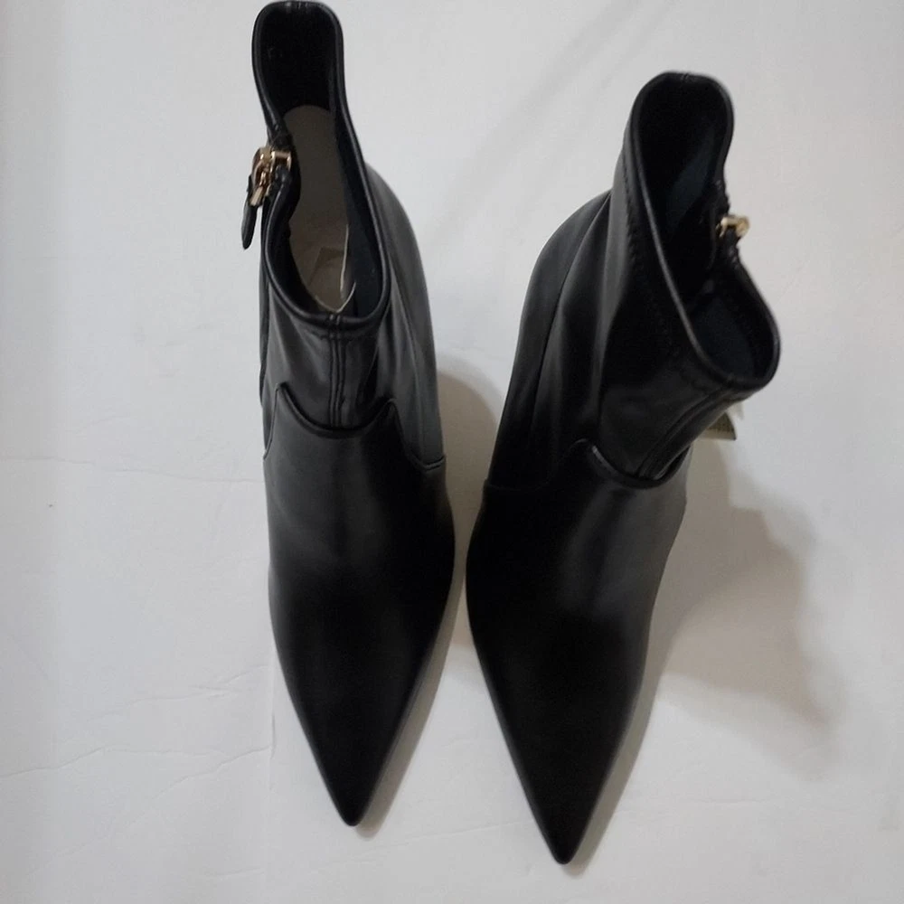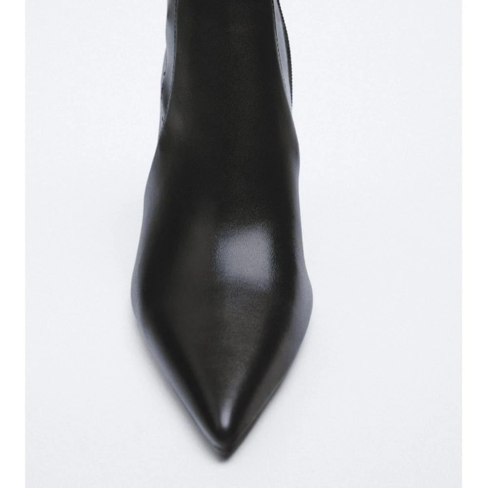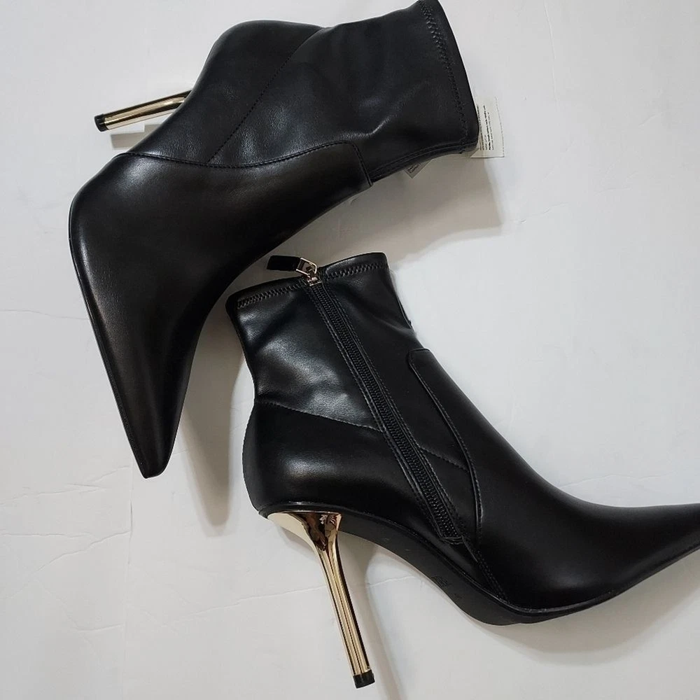 heeled ankle boots, metallic stiletto heels, pointed toe, side zipper, stretchy shaft, pointed toe