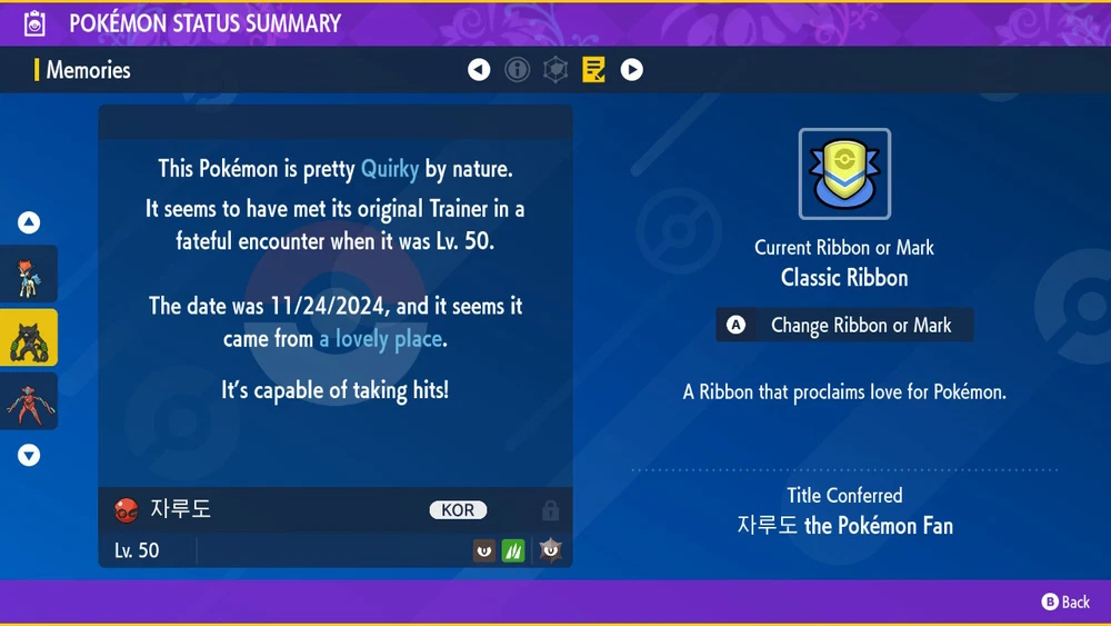 Free eBay listing template designed by dewiso.com FulaCity PokeCenter For all your Pokémon needs Details The Pokemon you'll receive has the following details: OT: 대작전 ID: 241122 Event: Korean Scrap Campaign 2024 This trade is for game: Scarlet & Violet This event is 100% legal and untouched. For further details on this event you can use Bulbapedia. If you want to see my other events [click here] . If you have further questions [click here] to contact me. You can also reach me via : fulacitypokecenter Handling information To trade: * You need NSO subscription to use internet to trade. * Go in-game, Press X, Select "Poké Portal". Press "L button" to connect INTERNET * Select "Link Trade", Enter the code I'll give you * Press "+" and select "Begin Searching" No shipping involved at all since this is a virtual trade. Why buy from me? Over 6000+ positive feedback with over 27.000+ sales. Fast delivery 100% legal Pokemon (!!!) safe to use anywhere. Use them in Pokemon Home, GTS, Pokemon Online Battles, Online Raids, Online Trades without issues! Disclaimer: I'm not affiliated with Nintendo, Creatures Inc, The Pokémon Company or GAMEFREAK. You are paying for the time and effort I spent breeding/obtaining the listed Pokémon.