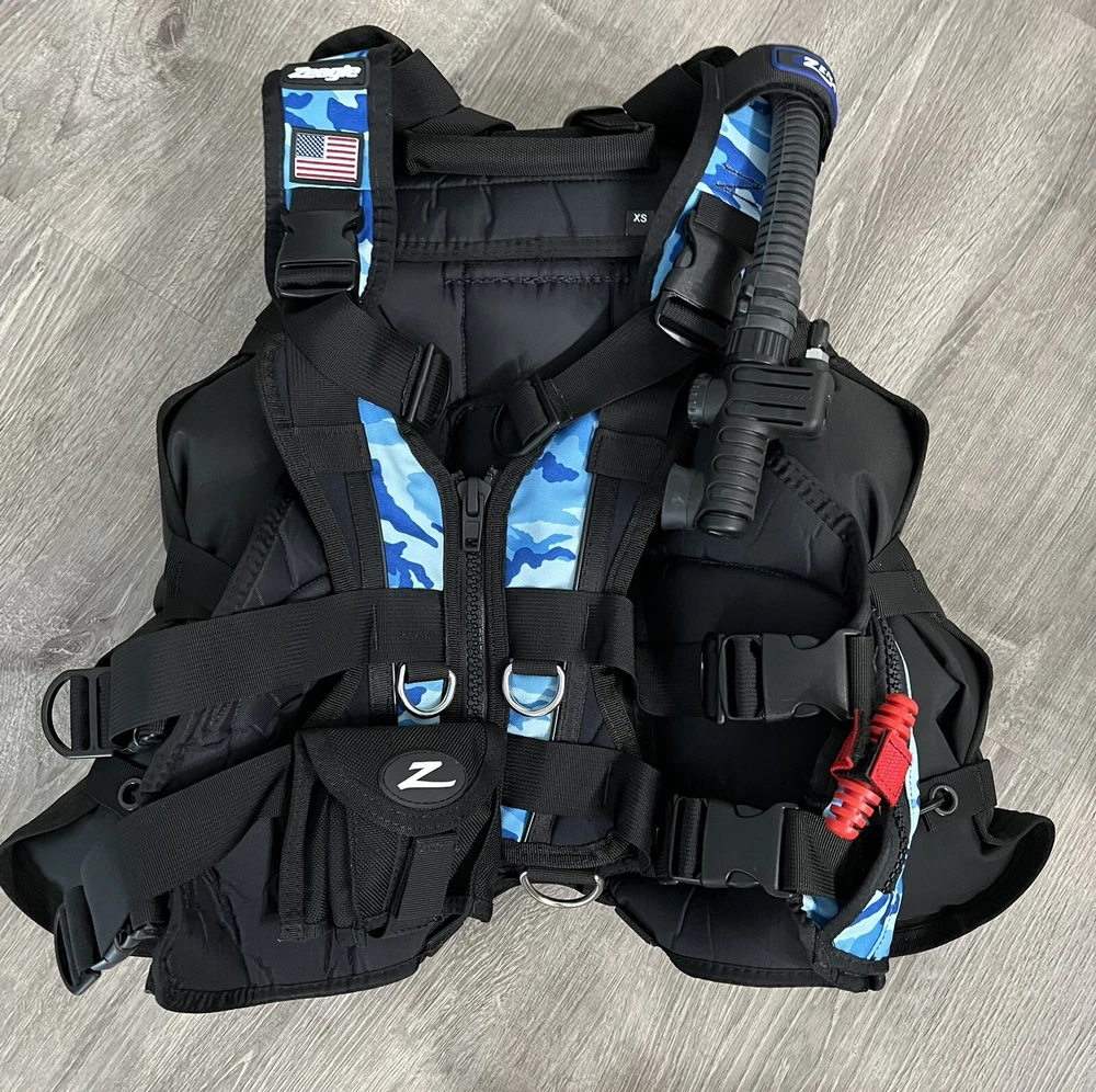 New never used Zeagle Zena Custom BCD size XS. I custom ordered this for my wife but she can no longer dive. See my other items and save! About Custom Zena BCD - by Zeagle SKU: 7401RK-Custom The Zeagle Zena BCD is specifically engineered for women divers, offering a comfortable and customizable fit that enhances your diving experience. Partnering with Dive Right In Scuba, Zeagle now offers fully customized Zena BCDs, allowing you to create the perfect buoyancy control system for your needs. Key Features: The Zena's unique design features a twin waist and hip band system that positions weights and buoyancy below the waist, optimizing trim and balance. The elastic front panels and adjustable straps provide a secure and comfortable fit, while the patented Personal Fit System (PFS) allows for independent adjustment of waist size, chest size, and torso length. This BCD also comes standard with Zeagle's signature Ripcord weight release system for quick and easy weight ditching in emergency situations. Plus, you can personalize your Zena with a variety of colored front panels to match your style. Just use the Custom Zeagle Builder to create your personalized Zena BCD.