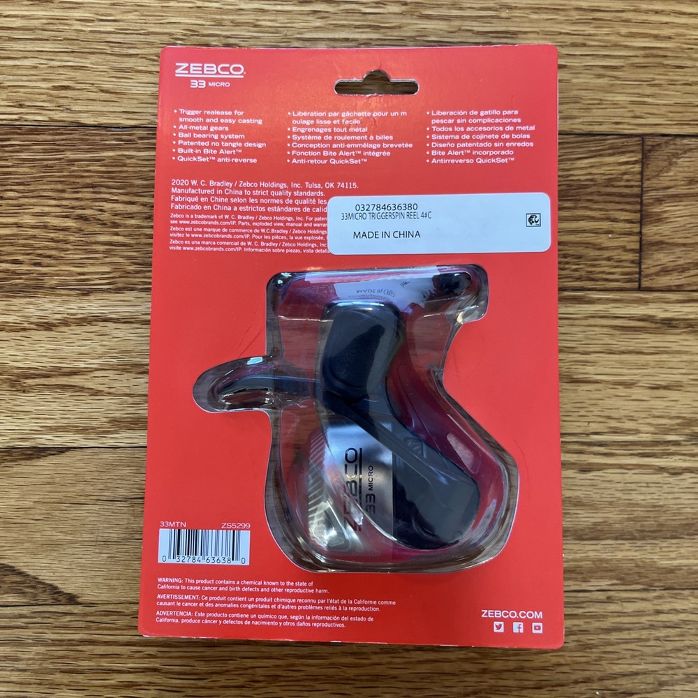 Country of Origin:ChinaModel:33MTNgtin13:032784636380Line Recovery:22" Per TurnPre-Spooled:YesGear Ratio:4.3:1UPC:032784636380Line Capacity:4 lb/100 ydBall Bearings:1Brand:ZebcoReel Type:TriggerspinHand Retrieve:BothFish Species:All Freshwater