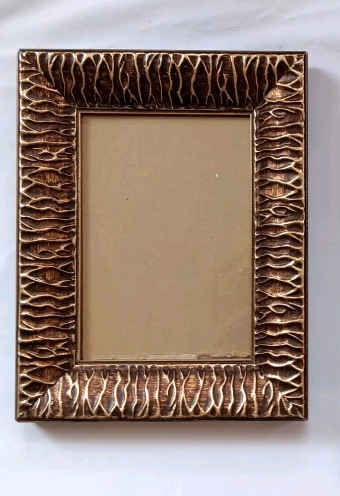 The frame is in great condition ~Brown wood frame with an abstract zebra design and gold accented holds 5x7 photo. Please take a look at the photos for more details. Please take a look at my other frame bundles. Combined shipping.