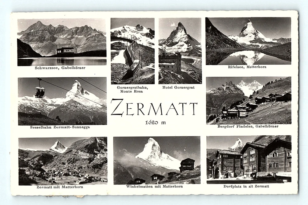 Zermatt 9 Switzerland Mountains Matterhorn Photos Black White RPPC Postcard E7