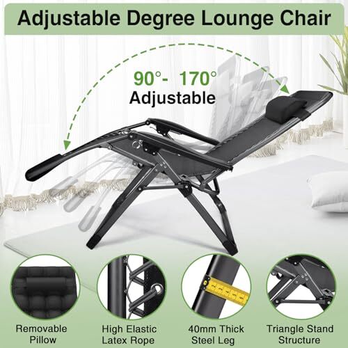 Return Policy Fast Delivery Trusted seller Zero Gravity Chair Lounge Chair Recliner w/Upgraded Lock and Removable Cushion, Reclining Camping Chair w/Cup Holder Tray & Headrest, Folding Reclining Patio Chairs for Indoor Outdoor, Black Product Description 440lbs Load Support: Zero gravity chair ensures stability and safety through a reinforced steel tube structure, preventing wobbling and collapsing, and providing greater load-bearing capacity, can support weights of up to 440 pounds. Zero Gravity Design: Zero gravity lounge chair features an adjustable design, allowing effortless adjustments between 90º to 170º according to your preferences. Aluminum alloy buckle can lock the position more securely compared to the plastic version. Portable & Easy to Use: Folding reclining chair can be folded and unfolded within seconds, making it highly convenient for transport and storage. Portable recliner chair is suitable for various outdoor settings, including patios, lawns, gardens, Removable Cushion: Anti gravity chair comes with a removable cushion, adding extra comfort. For better summer ventilation, this cushion can be taken off, upgraded fabric enhances the sleeping experience for added comfort. Versatile: Whether you want to relax with a book or take a break, this comfortable zero gravity recliner chair is an great ideal solution, comes with pillow, cup holder, soft foorest, offers multiple comfortable positions and convenience to meet different needs. Shipping Returns Payment Shipping Shipping is FREE to all addresses other than APO/PO boxes in the lower 48 states. All our stock ships from US-based warehouses. Shipped via USPS or UPS (depending on location and package weight) Unless stated otherwise, all orders will ship within 24-72 hours of your payment being processed. Check our feedback to see the great reviews of FAST shipping we offer. Returns Seller does not accept returns Payment We currently accept payment via eBay managed payments only. Once payment is cleared, we will dispatch your shipment within 1-3 business days. Please refer to the "Shipping" tab for more information regarding shipping speed to your destination.