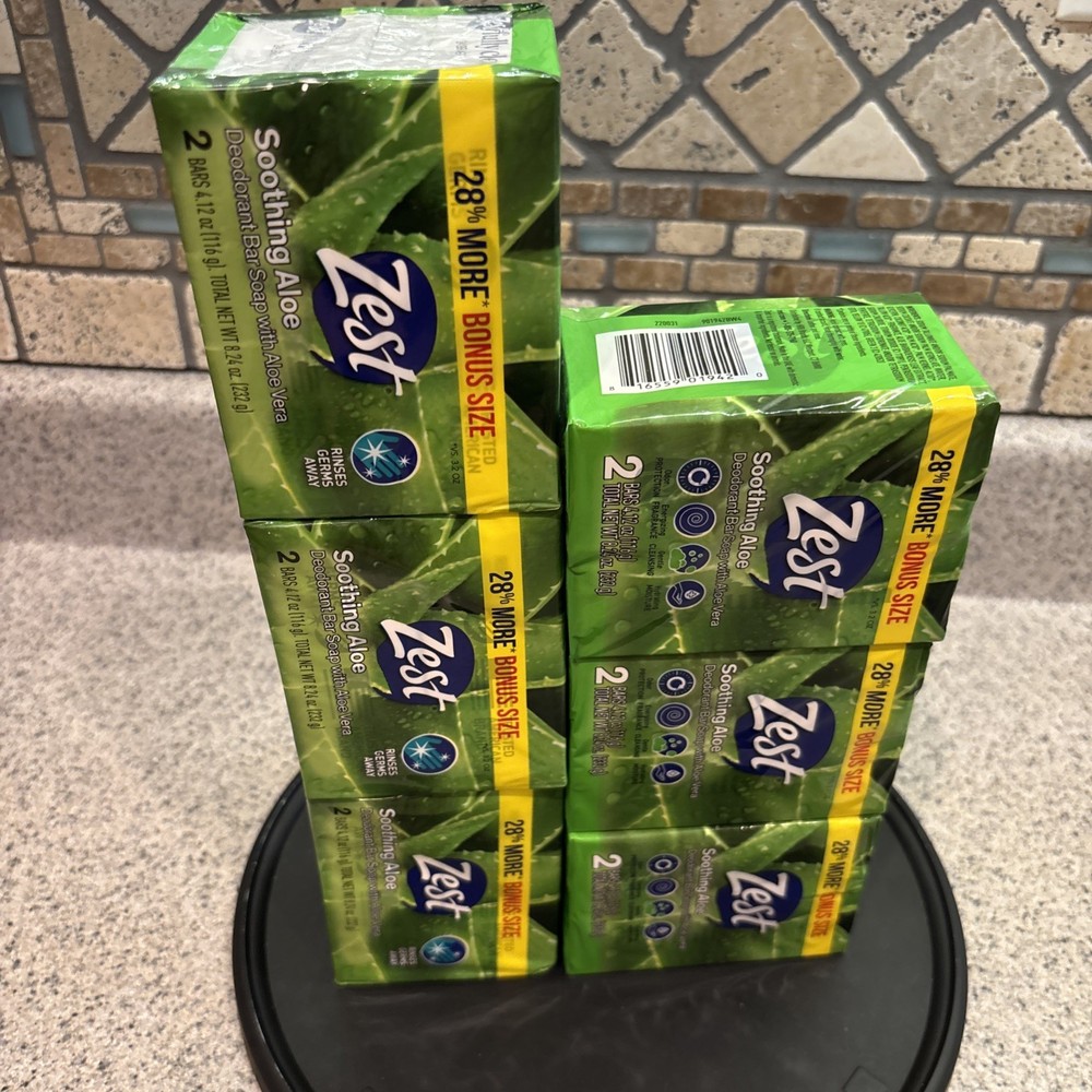 Zest Soothing Aloe Bar Soap 12 Bars, 4.12oz Each Bar.
