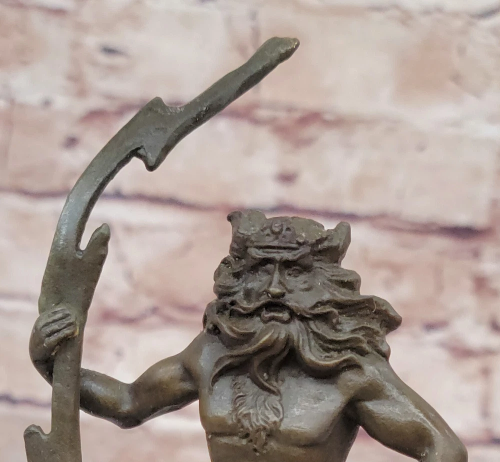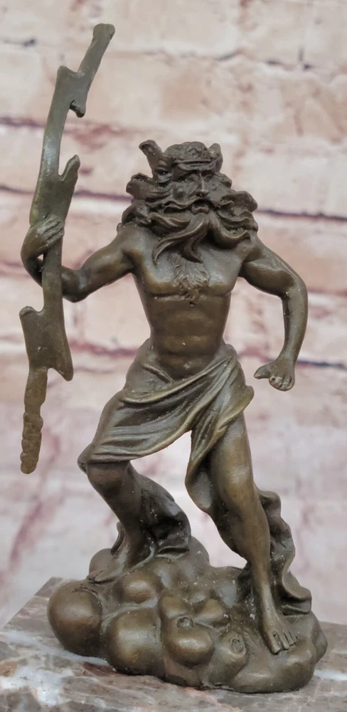 Zeus Jupiter Bronze Artwork Greek Roman Mythology God Sculpture Hot Cast Gift NR Zeus Jupiter Bronze Artwork Greek Roman Mythology God Sculpture Hot Cast Gift NR Condition : This sculpture is in perfect condition Bronze Dimensions with Marble Base: Height 10.5" X Width 3.5" Marble Dimensions:3.5" X 2" Height without base:5.5" Weight:5 LBS Inventory:34XNCH0173043 This majestic bronze sculpture of Zeus (Jupiter), the Greek and Roman god of the sky, law, and order, captures the power and grandeur of the King of Mount Olympus. With a commanding presence, Zeus is depicted in a moment of divine authority, symbolizing his role as the ruler of gods and men. His strong, muscular form and flowing robes showcase the artist’s exceptional attention to detail, embodying the deity’s supreme power and wisdom. Handcrafted using the ancient lost wax method, this 100% bronze sculpture is finished with a rich brown patina, enhancing its depth and timeless appeal. The brown marble base provides a solid foundation, complementing the statue’s regal aesthetic. The intricate craftsmanship reflects the classical artistry of Greek and Roman traditions, making it a perfect tribute to mythology and ancient civilization. Ideal for collectors of mythological sculptures, classical art, and historical décor, this striking representation of Zeus serves as a bold statement piece for any home, office, or gallery setting. Whether as a symbol of strength and leadership or a connection to ancient mythology, this magnificent bronze figure is an impressive and meaningful addition to any art collection. Signed Poseidon God of Sea Bronze Bookend Book End Sculpture Marble Base Statue Video will open in a new window Using the eBay App? Paste link into a browser window: [isdntekvideo] Shipping Terms : Most of our items are shipped via USPS (United States Postal Service) mail or UPS. Most orders are shipped within 24-48 hours of purchase. Please be aware that not all items are available for USPS shipping due to size and weight. We do ship to Hawaii, Alaska, Canada, Puerto Rico, APO/AE, and U.S. Virgin Islands, however, an additional charge may be required. Please contact us before making any purchases in these areas. For Non-USA customers, you may be responsible for all duty, tax, brokerage fees that may be due upon delivery (shipping costs cover freight charges only). We also ship internationally. Please refer to the "Shipping and Handling" chart for the rates for each area. Payment : We accept just about any form of payment. PayPal, Master Card, Visa or American Express credit cards. Money orders, cashiers checks, and even personal or business checks. For governmental institutions, we will also accept a purchase order. Please understand that for personal or business checks we have to wait for the check to clear (usually 7 days) before shipping. Condition : New Detailed Hand Crafted Hot Cast Bronze Satisfaction Guaranteed. This is Stock Photo, Slight Color Variation!! Listing and template services provided by inkFrog