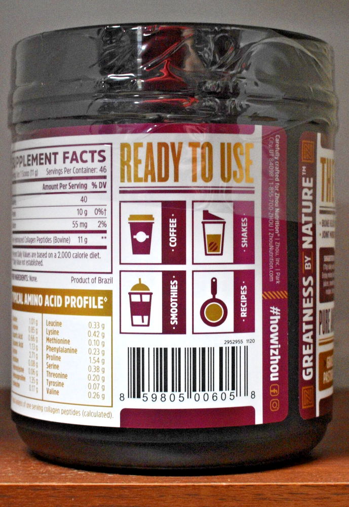 The Zhou Nutrition Collagen Peptide Hydrolyzed Protein Powder is an all-natural, zero-carb supplement designed for individuals looking to support their joint health, skin, hair, and nails. With active ingredients like collagen, arginine, and glycine, this powder is specially formulated to be taken after meals, before workouts, or before meals, making it ideal for gym and training enthusiasts as well as those interested in anti-aging and general wellness. This grass-fed, non-GMO product comes in an 18 oz container and is easy to incorporate into your daily routine with its unflavored powder form.