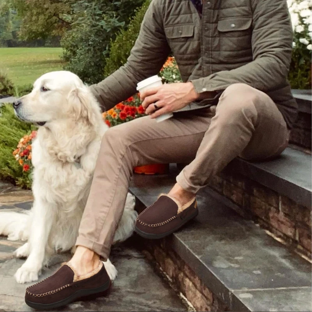 riemot Mens Memory Foam Indoor Bedroom Slippers Winter Warm Fluffy House Shoes