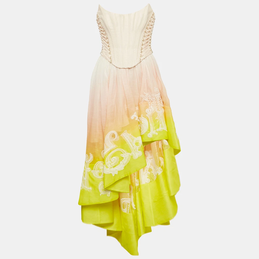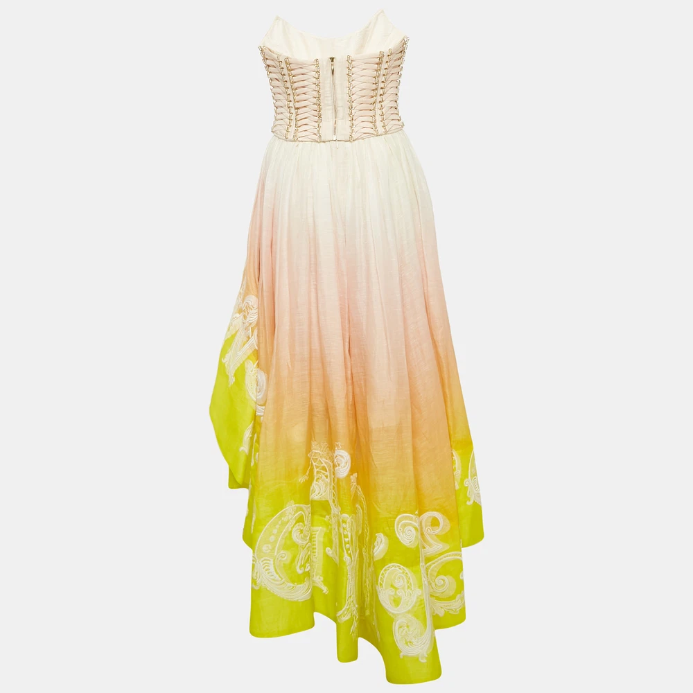 The fine artistry and the feminine silhouette of this designer dress exhibit the labels impeccable craftsmanship in tailoring. It is stitched using quality materials, has a good fit, and can be easily styled with chic accessories, open toe sandals, and sling bags.Certified by The Luxury Closet - This item has gone through a detailed authentication process overseen by our experts. We offer a lifetime guarantee of authenticity on all our items. Import duties, taxes and charges are not included in the item price. These charges are the buyers responsibility. Please check with your country’s customs office to determine what these additional cost will be prior to buying. Our eBay Store About Us Contact Us Add to Favorite Sellers Zimmermann Multicolor Ombre Linen Blend Wonderland Dress S $930.6 The fine artistry and the feminine silhouette of this designer dress exhibit the labels impeccable craftsmanship in tailoring. It is stitched using quality materials, has a good fit, and can be easily styled with chic accessories, open toe sandals, and sling bags. Product Details Brand Color Multicolor Dimensions Material Linen, Silk Size S Outsole Width Outsole Length Heel Height Includes hanger, Original Dustbag, The Luxury Closet Packaging Certified by The Luxury Closet This item has gone through a detailed authentication process overseen by our experts. We offer a lifetime guarantee of authenticity on all our items. How We Check The in-house team of experts at The Luxury Closet is highly trained to verify the authenticity and the condition of the luxury products. They ensure that only 100% authentic items are put on sale.The evaluation process is unique with its own mix of assessment criteria and differs according to the category. Each item is evaluated based on the following combination of hallmarks, hardware, stitching, symmetry, material, craftsmanship, stamping, codes, hologram stickers, and packaging. Our authenticators also check if the items have been modified or amended (e.g., aftermarket diamonds, replaced batteries, repaired bags, etc.) International Buyers Import duties, taxes and charges are not included in the item price. These charges are the buyers responsibility. Please check with your country’s customs office to determine what these additional cost will be prior to buying.