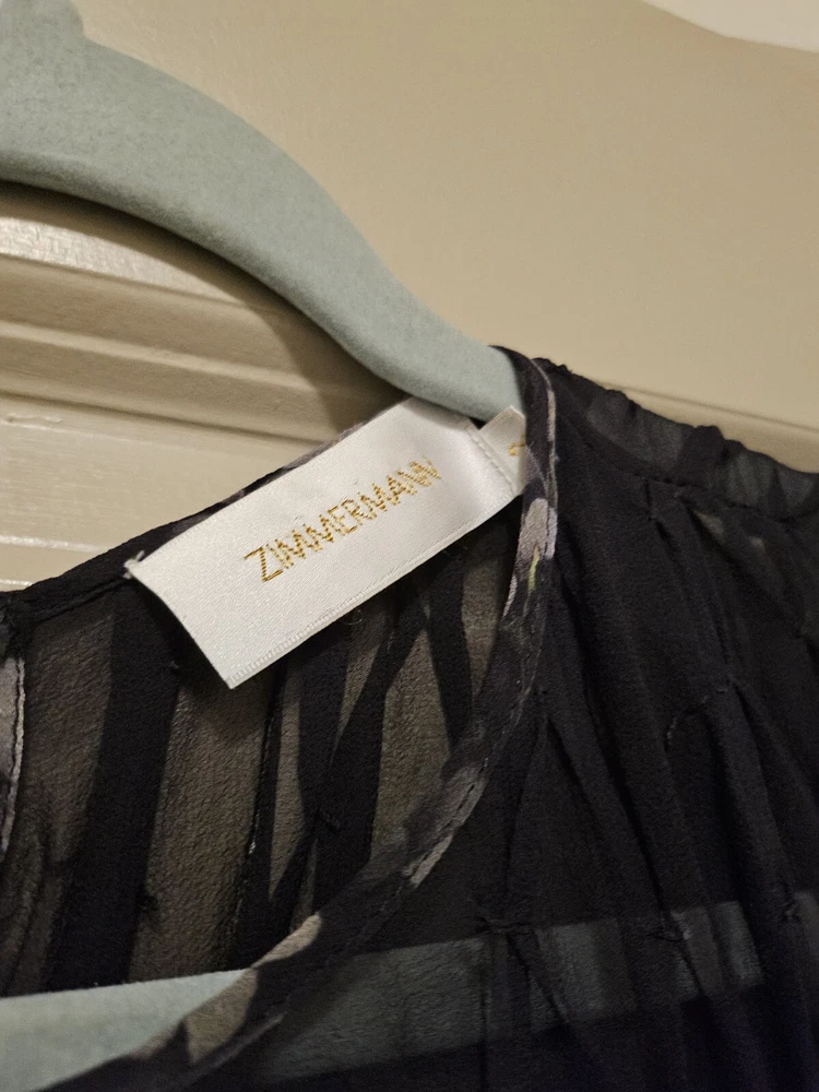 This stunning Zimmermann silk top is a must-have addition to any fashionable woman's wardrobe. Crafted with the finest materials, this blouse is both comfortable and luxurious. The long sleeves and round neckline make it perfect for any occasion, whether a day at the office or a night out on the town. This top is ideal for pairing with jeans or a skirt, making it a versatile piece that can be dressed up or down. Add this Zimmermann silk top to your collection today and elevate your style.