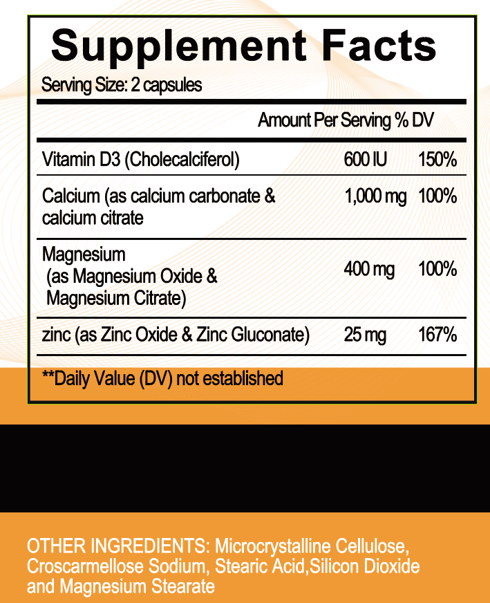 ☑ If you not received the package in shipping time, please email us, Instead of directly opening the item Not Received requestThanks for your understanding .we will definitely help you solve the problem ^ ^ About the item About the item: Brand:MULITTEA Item Type: Calcium Magnesium Zinc Capsules Quantity: 120 capsules Shelf Life: 2 years Feature: Calcium: Important mineral for healthy, strong bones & teeth, nerve & muscle function support. Magnesium: May help support calcium absorption & healthy heart, muscle, nerve & circulatory function. Zinc: Involved in 100+ enzymatic processes, zinc is intended to help support healthy immune function. Vitamin D3 is one of the 13 essential vitamins needed for health and well-being. It helps the body absorb calcium and other nutrients. Ingredients: Vitamin D3(Cholecalciferol):600 IU 150% Calcium (as calcium carbonate & calcium citrate: 1,000 mg100% Magnesium(as Magnesium Oxide &Magnesium Citrate):400mg 100% zinc (as Zinc Oxide & Zinc Gluconate):25mg 167% OTHER INGREDIENTS: Microcrystalline Cellulose,Croscarmellose Sodium,Stearic Acid,Silicon Dioxideand Magnesium Stearate How to use: Take 1-2 softgels daily with water or a meal. What you can get? 1/2/4*120pcs Calcium Magnesium Zinc Capsules --------------------------------------------------------------------------------------------------------------------------------------------------------------- Note -- About the color:due to the different light and monitors, the real color might be a little different from the pictures. -- About the size:manual measurement, errors cannot be avoided. -- Other things in the pictures are not included. -- These statements have not been evaluated by the Food and Drug Administration. This product is not intended to diagnose, treat, cure or prevent any disease. -- Before purchasing this product, please check whether you are allergic to the ingredients of the product. If you have allergic symptoms, please stop using this product. --------------------------------------------------------------------------------------------------------------------------------------------------------------- After-sales service ☆ Our purpose is to provide quality services to buyers, if you have any questions, please contact us! ☆ If you are satisfied after receiving the product, hope you willing leave us a positive feedback . ☆ If there are any problems with the product or you have any confused, please contact us first , we will reply to your message as soon as possible, and do our best to solve the problem for you. (Non-working day messages may be replying a bit slow, please understand!) --------------------------------------------------------------------------------------------------------------------------------------------------------------- Payment ►Payment is needed to receive within 5 days after deal.If not we will close the transaction. ► We only accept PayPal . ► Please make sure you have a valid/confirmed PayPal account prior bidding. And please make sure that your PayPal registed address is the same with your eBay registed address. ► Import duties, taxes and charges are not included in the item price or shipping and handling. These charges are the buyer’s responsibility. --------------------------------------------------------------------------------------------------------------------------------------------------------------- Shipping ☆ We will arrange shipping for you within 24-48 Hours after payment cleared except the holidays . ☆ We always send the item to the address you give us on PAYPAL . If you have changed your address, or want us to ship to another address, please change to the new address when you pay us with PAYPAL, otherwise we will not be responsible if the package is lost. ☆ We hope it arrive on time. Sometimes,shipping time will be delayed by the courier company as for bad whether or othersituation. ☆ Sellers are not responsible for service transit time. Transit times are provided by the carrier, exclude weekends and holidays, and may vary with package origin and destination, particularly during peak periods. Thank you for your understanding :) --------------------------------------------------------------------------------------------------------------------------------------------------------------- Returns Policy ★Note: Please contact us via ebay message before starting a return request, we will deal with your issue quickly and efficiently. ☆ Items can be returned for exchange or full refund within 5 days from the date you receive your merchandise if they are defective. We are not responsible for any purchase after this 5-day period. ☆ Please obtain the RMA number & returned address for any return items. ☆Return items MUST have all ORIGINAL packaging and accessories. ☆Select a reason: please choose "It's the wrong size or doesn't fit" ☆We will replace items which are malfunctioning, for 20 days from the date you received. ☆Items which have physical abuse are not covered by the warranty. Refunds are only offered for defective products reported within 5 Working Days upon receipt. --------------------------------------------------------------------------------------------------------------------------------------------------------------- About us ☆ Please use the link "Ask the Seller Question" or send "eBay message" in you " My eBay " to contact us if you have problems , special requests or suggestions, we are very glad to help you anytime. Due to the 12 hours time difference between West and Asia we will reply you within 24-48 hour. ☆ Please leave us the positive feedback and good detailed seller rating after you received our package and satisfied with it. As you know, every seller works hard for the positive feedback and if you have any question with the transaction or you do not satisfy with the item ,please feel free to contact with me before you leave any feedback ,I will responds you within 24-48 hours. ☆ If you have a