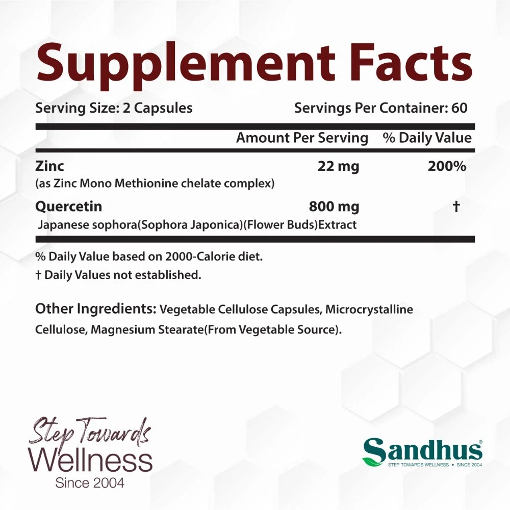 Zinc Quercetin, Dietary Supplements, 120 Vegetarian Capsules