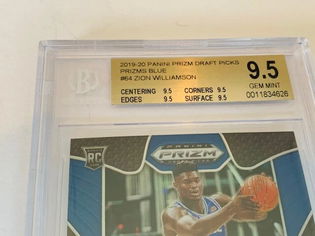 Absolutely awesome and highly collectible 2019-20 Panini Prizm DP BLUE short print Zion Williamson True Rookie Graded a BGS 9.5 GEM MINT! See all pictures for amazing condition, size, and detail. There are absolutely no returns on graded sports cards as you know exactly what you are getting because it is professionally graded and the market for sports cards changes literally on a daily basis. Check out my store for some of the rarest vintage collectibles online from all eras. Thanks for looking and have a great day! :)