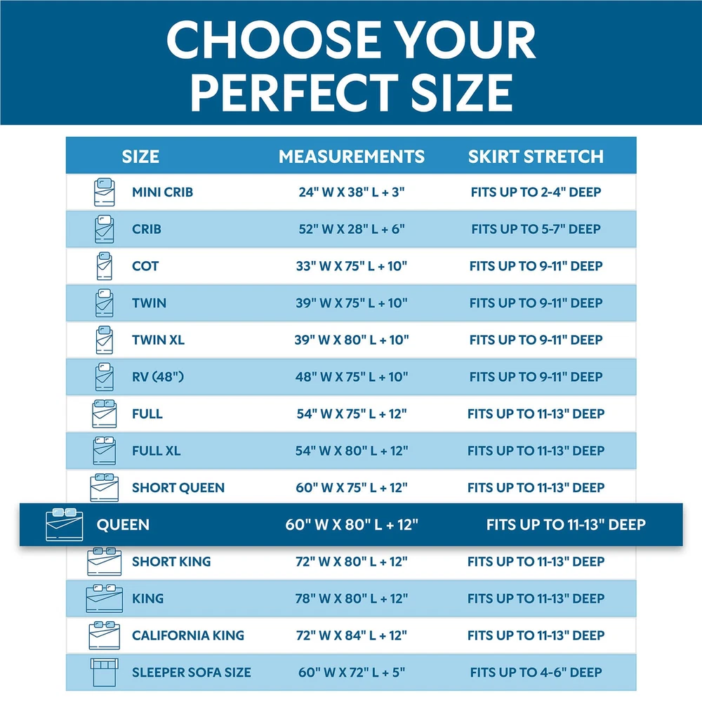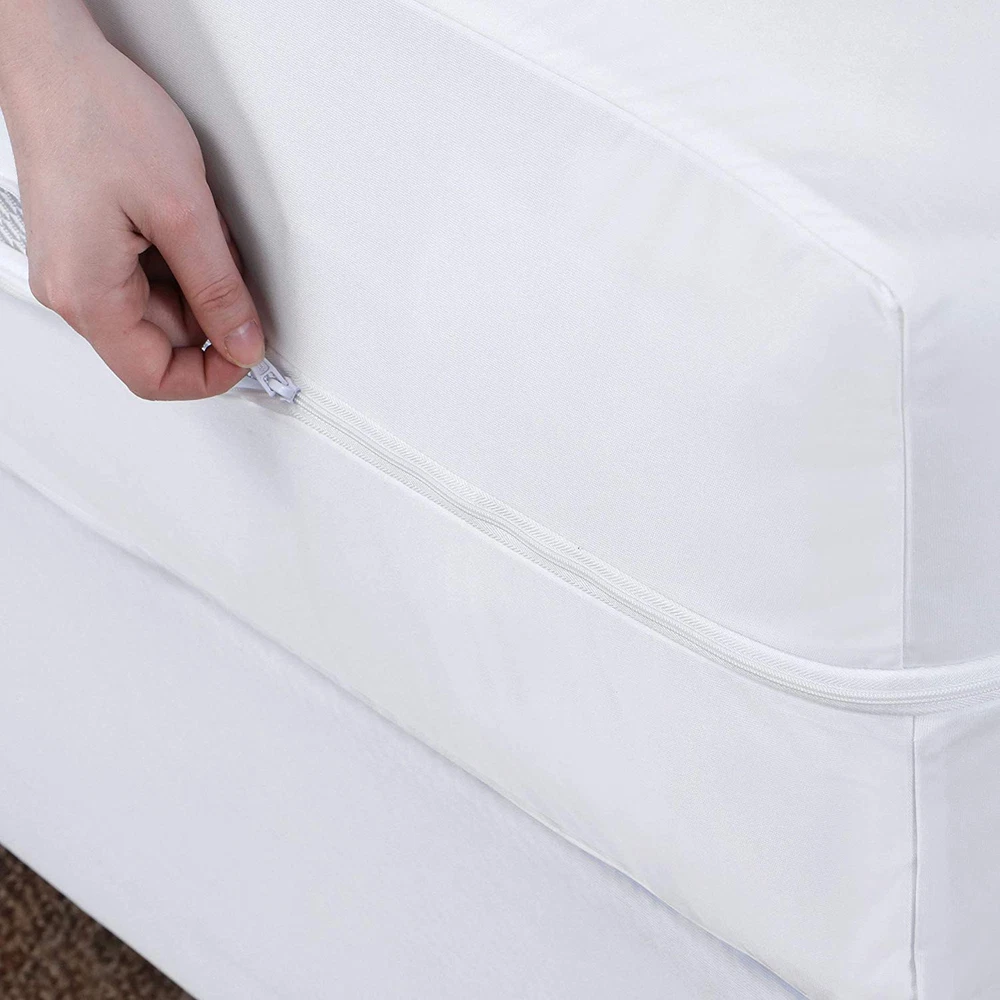 100% WATERPROOF MATTRESS PROTECTOR: The mattress protector does exactly that. It protects your mattress against any and all liquids. Whether it is a drink or urine no liquid spill will penetrate through the TPU laminate membrane. BED BUG PROOF MATTRESS COVER: Many mattress encasements make the claim that they are bed bug proof. Only makes that claim and backs it up by being manufactured in an EPA Registered Facility. Our nylon coil zippered encasement is state of the art to ensure nothing gets in or out once the mattress has been sealed shut. ZIPPERED MATTRESS PROTECTOR: The Mattress Protector is made with a nylon coil zipper, which will prevent the zipper from trapping or snapping as is the case with other mattress encasements on the market. If there was such a thing as state-of-the-art zippered technology. 's mattress encasement would be it. It is a zipper made with durability in mind. SIZE AND DEPTH: Queen Size Measure 60 x 80 x 11. Depth Stretches to 13 inches. Will fit perfectly any regular sized queen mattress. SOFT AND BREATHABLE: Made from a high quality polyester, the Mattress Cover is soft, breatheable, and extremely comfortable. Gone are the days of feeling like you are sleeping on a plastic mattress case and welcome to full protection without compromising on comfort. HYPOALLERGENIC: The Mattress Encasement protects against dust, dirt, and dander. When you go to sleep on a Mattress Protector you can don't have to worry about sneezing throughout the night anymore. Sleep allergy free with . EASY-TO-INSTALL: You may need people to lift the mattress upwards, but besides that our mattress encasement easily slips on the mattress 1-2-3 without any troubles or headaches and when you need to take it off to wash it slips off just as easy. EASY-TO-WASH: Simply handwash or put on quick load and all stains, dust, dirt, and dandruff will fall off with ease. 10 YEAR : doesn't just makes claims about the superiority of our product we also back it up with a 10 Year with no questions asked.