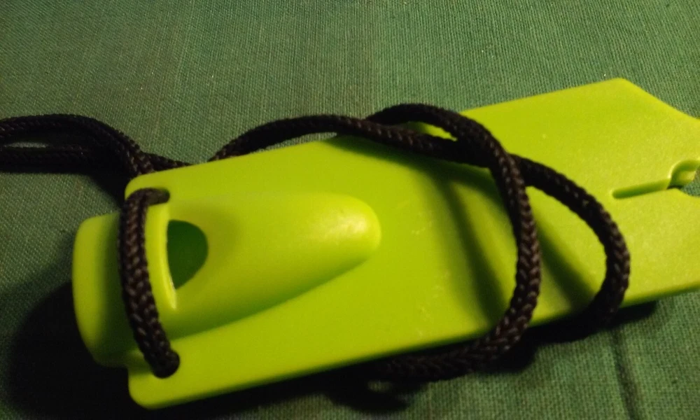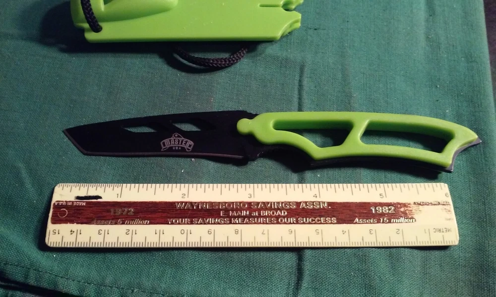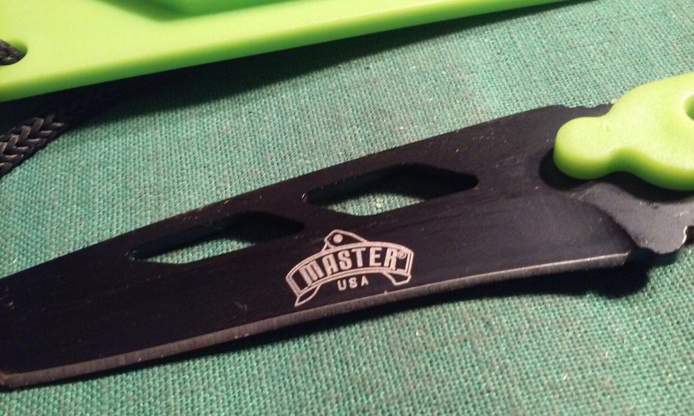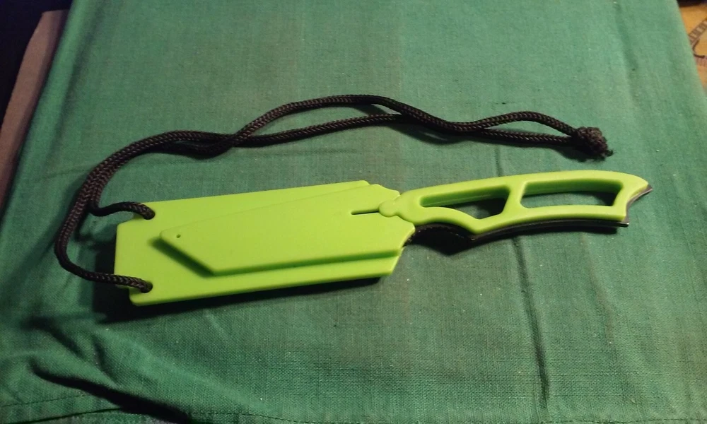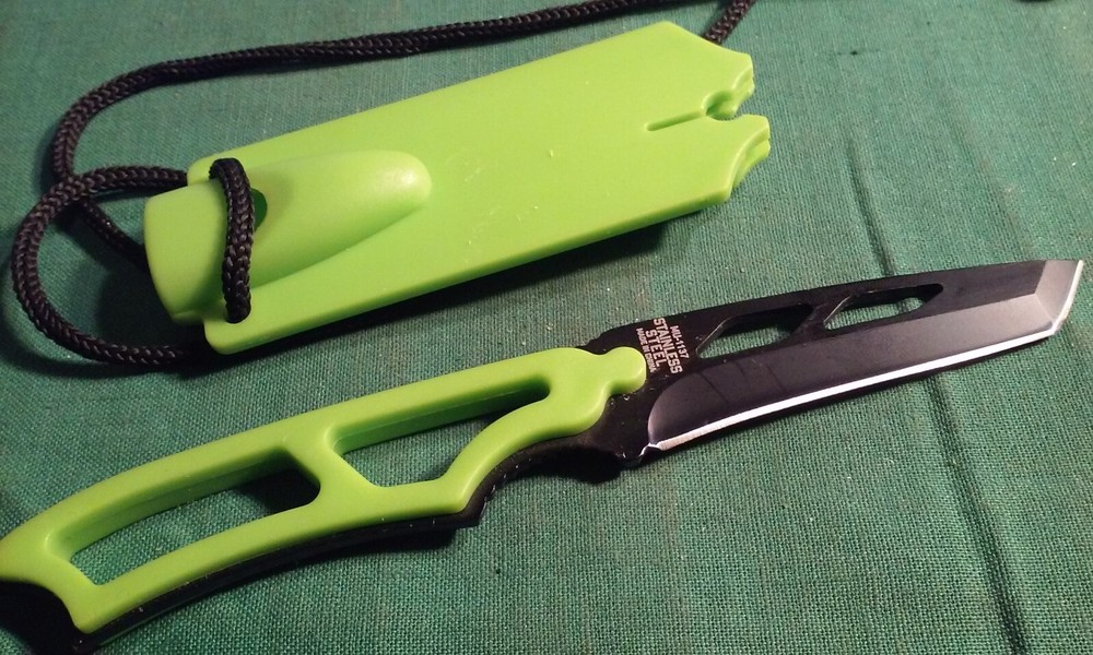Zombie Tactical Master Skinner Spear Blade Neck Knife w/ Green Sheath Camping, has built in whistle on handle, but not working.