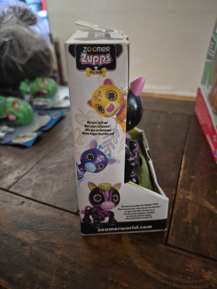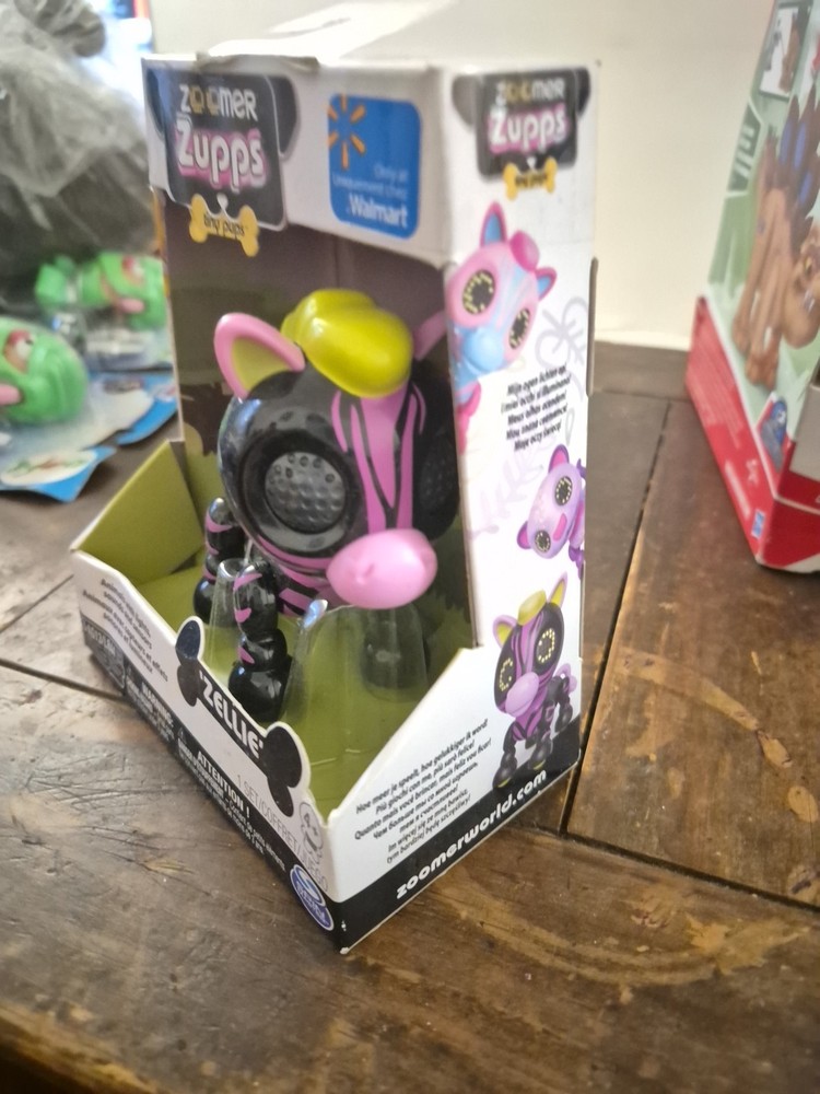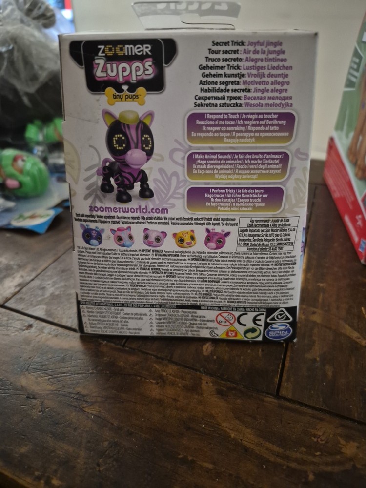 The Zoomer Zupps Safari Pets Interactive Zebra "Zellie" is an electronic toy that provides interactive play for children aged 4 and up. Produced by Spin Master, this toy features lights and sounds to engage kids in imaginative play. With its character from the Zoomer Zupps family, Zellie adds a fun and interactive element to playtime for young children.