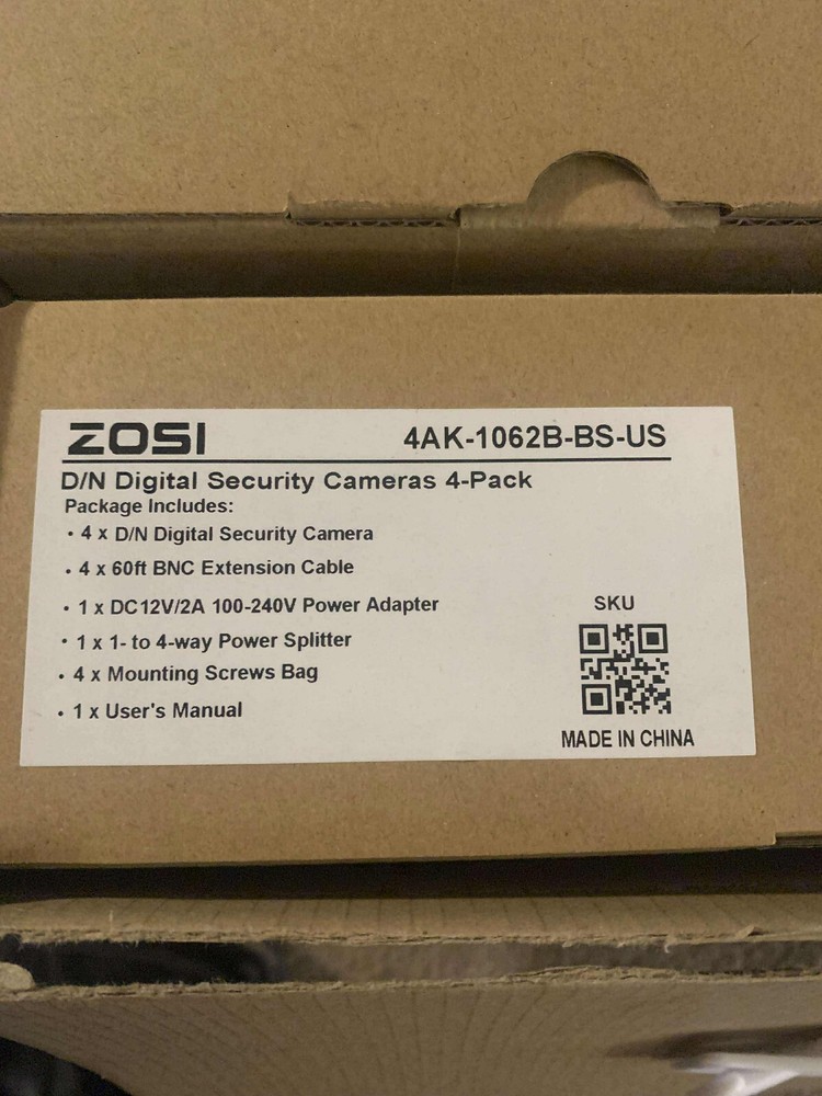 Zosi 4 Camera wired Digital Security System CONDITION - NEW, everything still wrapped up in boxes FAST SHIPPING - ONE BUSINESS DAY HANDLING - FREE USPS GROUND SHIPPING (Not responsible for USPS delivery times) About Us: Keller's Discount Shop is a division of Keller's Custom Services. We're an E-Commerce store specializing in the sale of an assortment of New & Pre-Owned items.