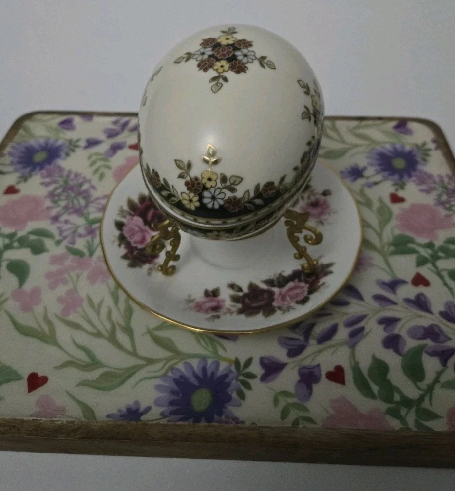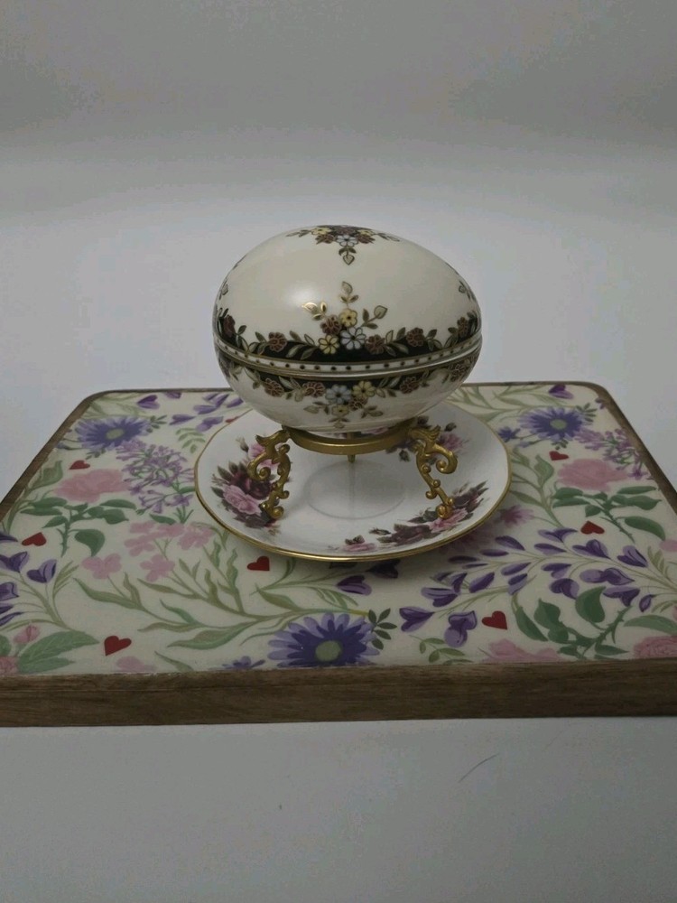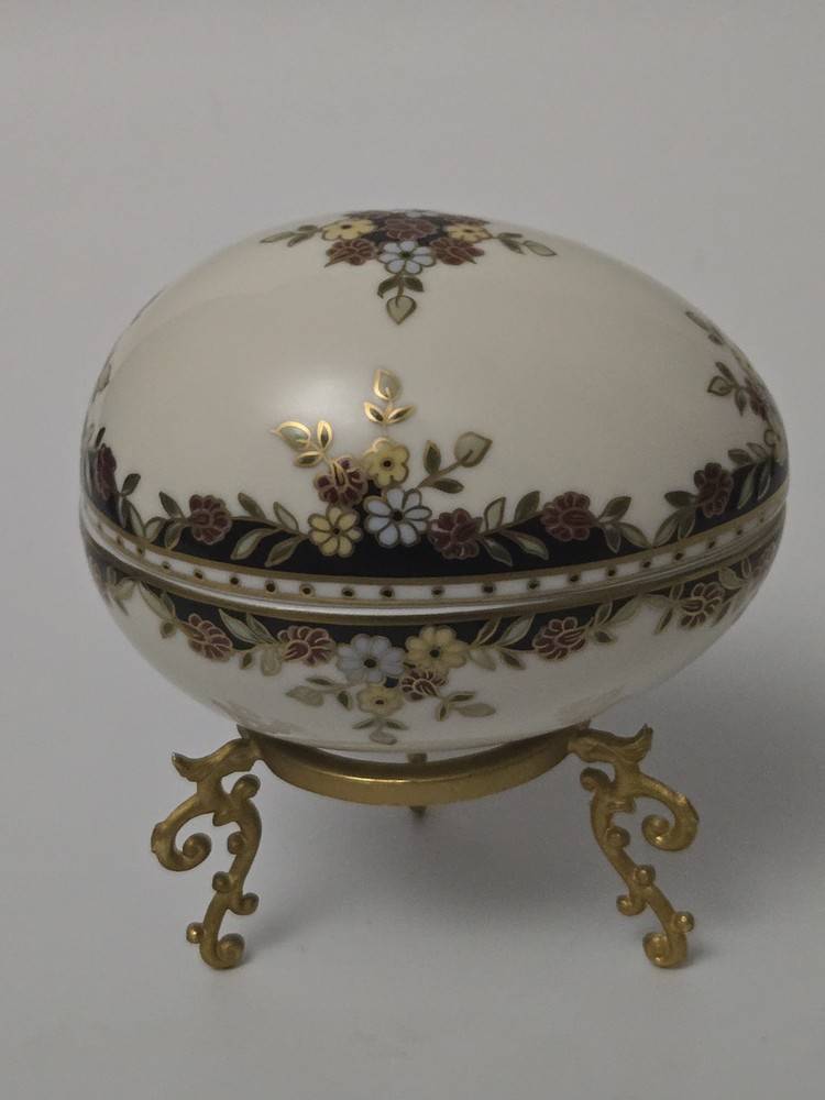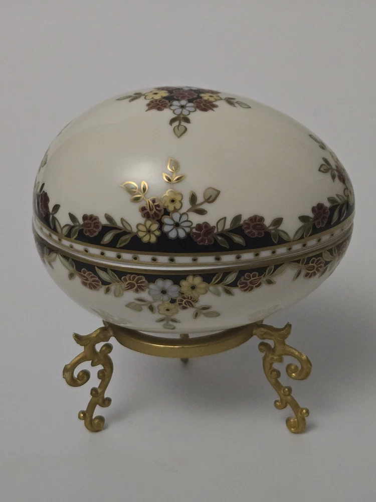Zsolnay Hungary Porcelain Egg Trinket Box with Gilt Stand | Hand-Painted Floral