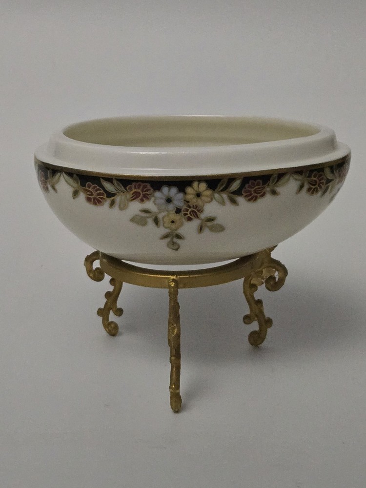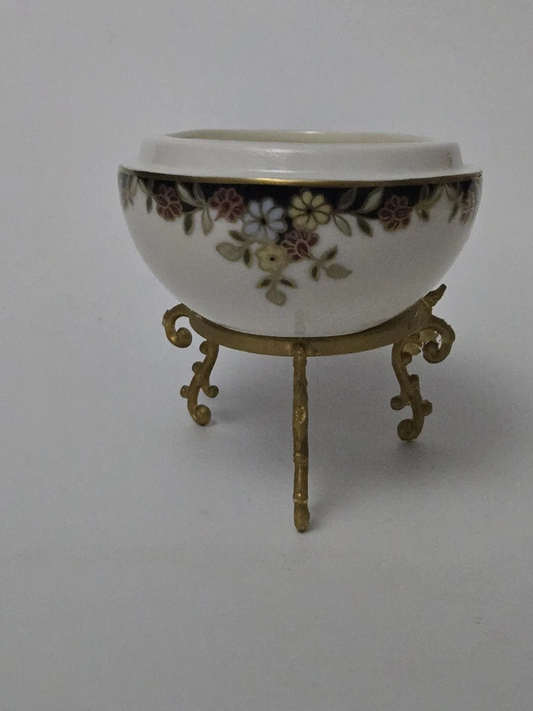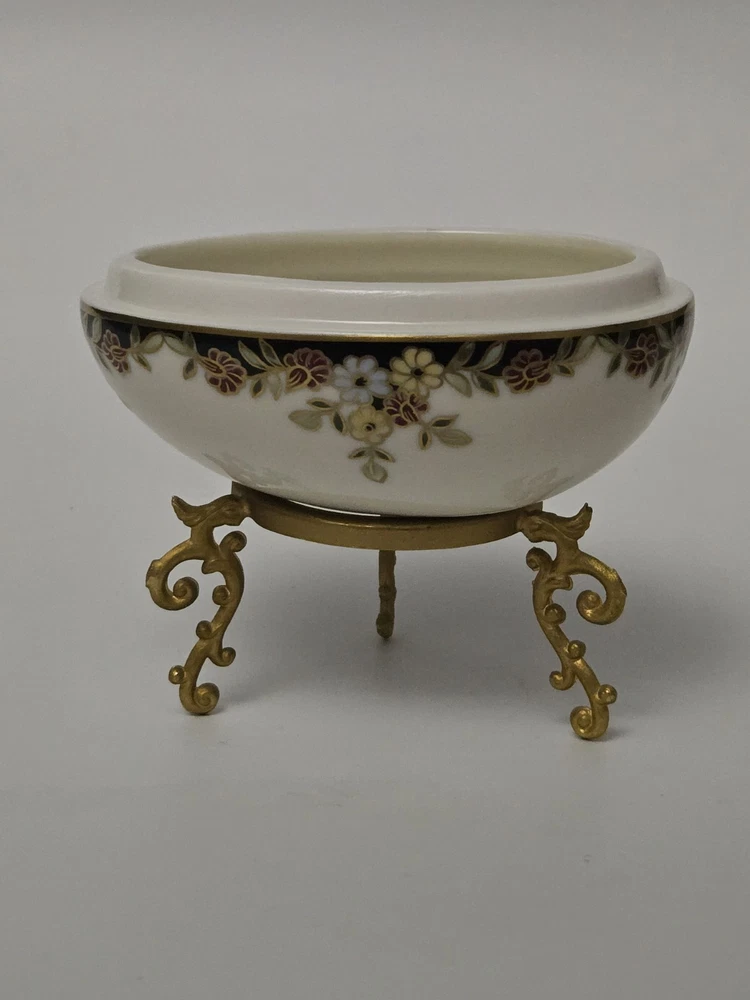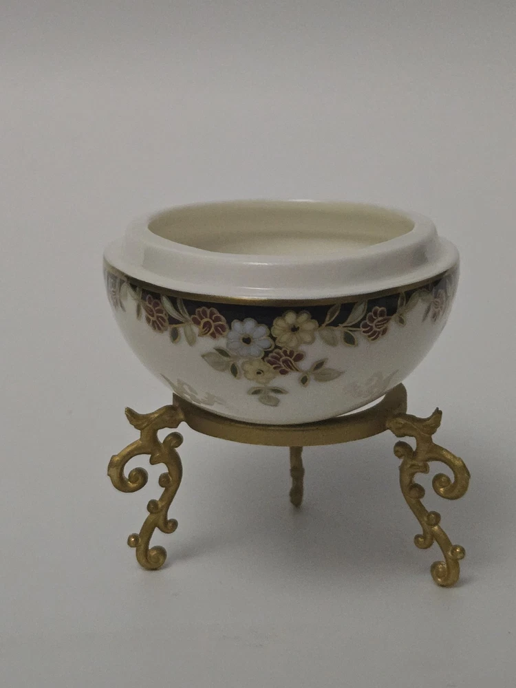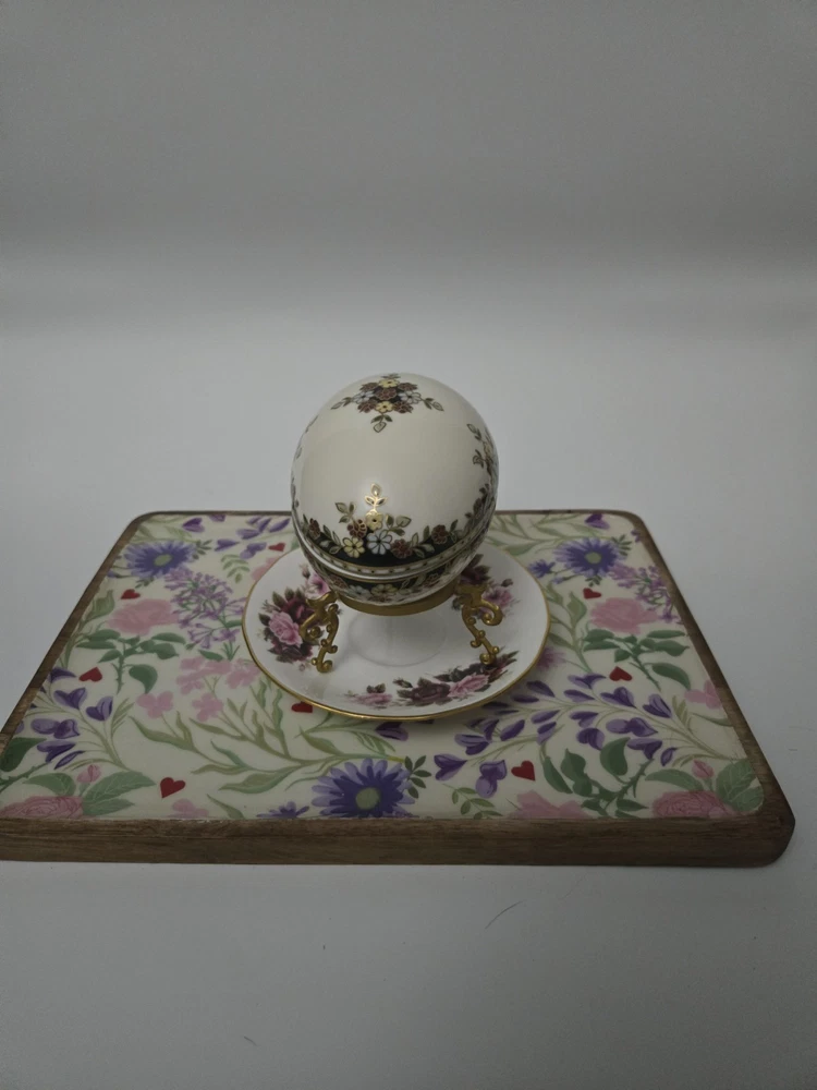 Zsolnay Hungary Porcelain Egg Trinket Box with Gilt Stand | Hand-Painted Floral