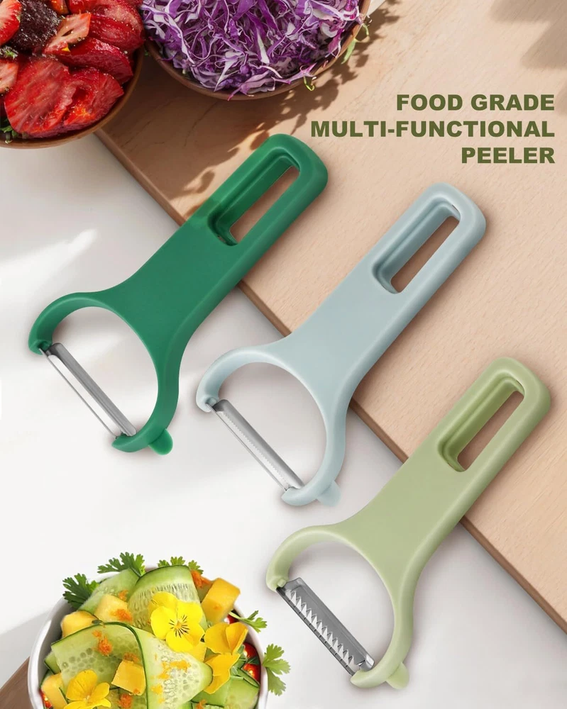 Zuacs Vegetable Peelers Kit,3 Pack Potato Slicer Julienne Peeler Fruit Cutter fo Features: Zuacs kitchen peelers set includes straight, serrated and julienne Peelers.Standard blade vegetable peeler can quickly removes tough skinned vegetables.Serrated blade for soft or smooth vegetable peeling.Julienne blade provides the function of Julienne cutting; This carrot peeler can be stacked on top of each other, and 3 can be combined into one for easy hanging or storage. This will greatly save space in your kitchen; Food grade 304 stainless steel and double-edged blade design features long-lasting sharp which can get smoothly peeling.It also has a strong anti-rust and anti-corrosion performance; Our fruit peelers has a non-slip handle design,works in right or left hand and maintains a firm grip and pressure to ensure peeling is effortless and safe; This vegetable peeler set is easy to clean and maintain. It can be washed directly with water. And it's also dishwasher safe.It's a cool kitchen gadget gift for those who loves cooking. Features: Zuacs kitchen peelers set includes straight, serrated and julienne Peelers.Standard blade vegetable peeler can quickly removes tough skinned vegetables.Serrated blade for soft or smooth vegetable peeling.Julienne blade provides the function of Julienne cutting; This carrot peeler can be stacked on top of each other, and 3 can be combined into one for easy hanging or storage. This will greatly save space in your kitchen; Food grade 304 stainless steel and double-edged blade design features long-lasting sharp which can get smoothly peeling.It also has a strong anti-rust and anti-corrosion performance; Our fruit peelers has a non-slip handle design,works in right or left hand and maintains a firm grip and pressure to ensure peeling is effortless and safe; This vegetable peeler set is easy to clean and maintain. It can be washed directly with water. And it's also dishwasher safe.It's a cool kitchen gadget gift for those who loves cooking. eBay integration by