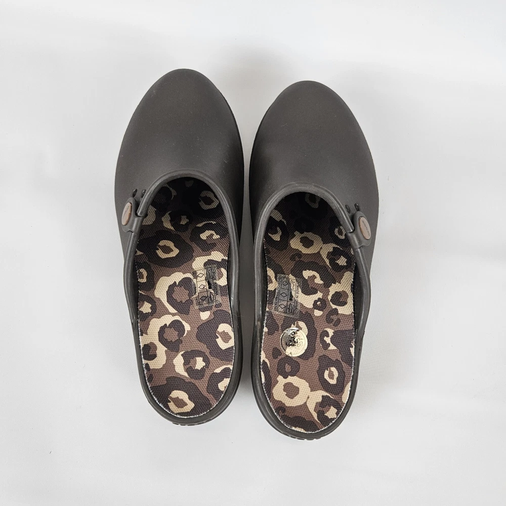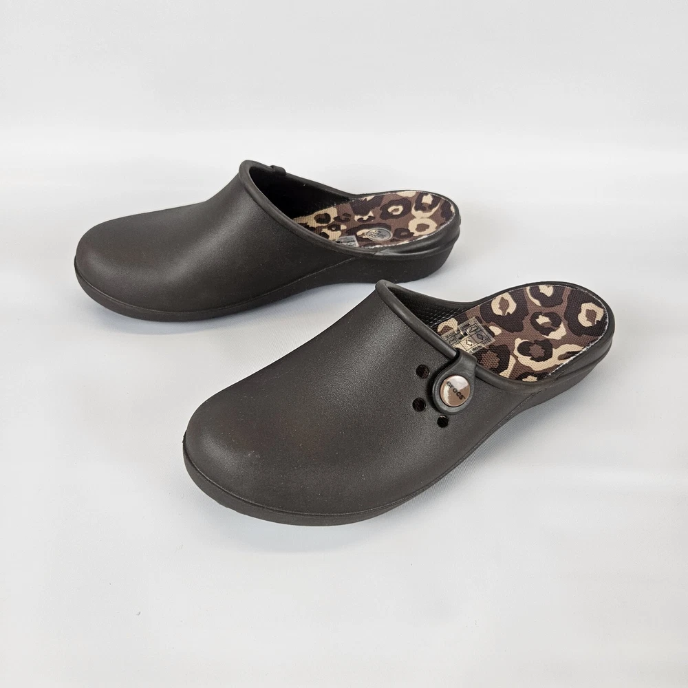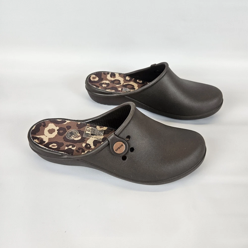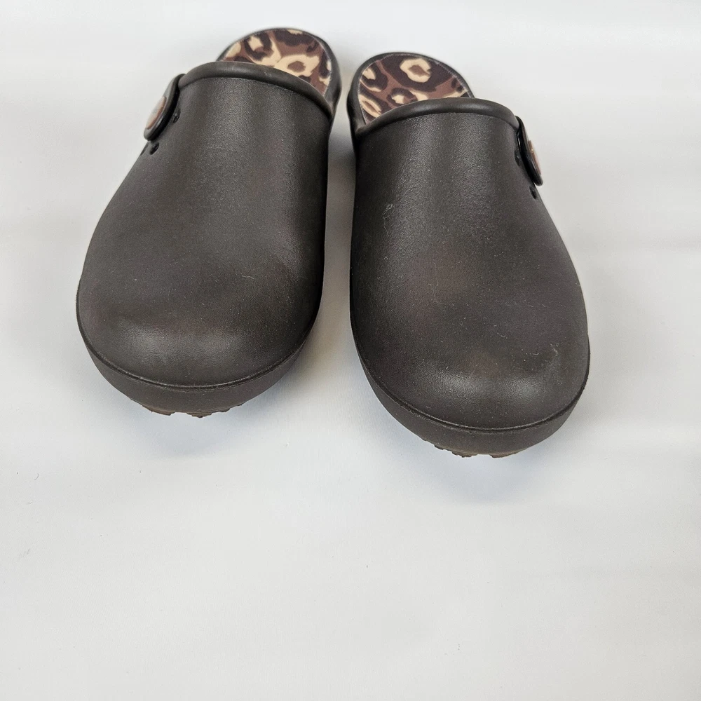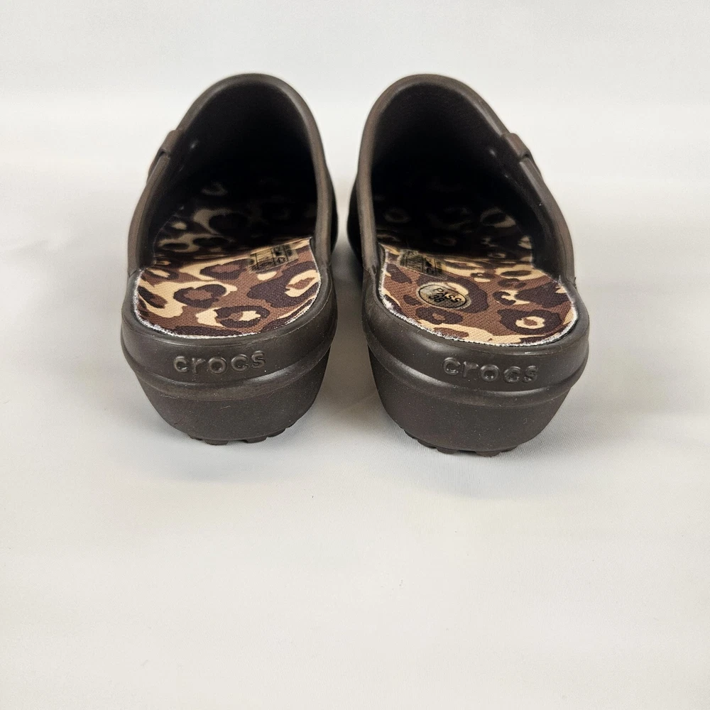 Crocs Tully ll Womens Mule Brown Comfort Clog Round Toe Size 8 Animal Print Very good pre-owned condition