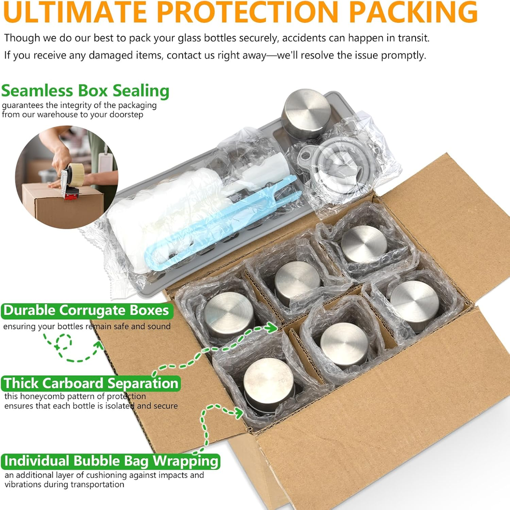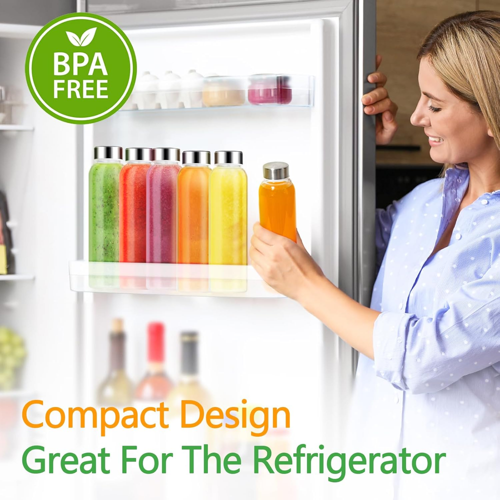 Store New Arrivals Add to Favorite View Feedback Contact Zukro Glass Juice Bottles with Lids for Juicing 18 Oz, Reusable Clear Glass Water Bottles with Stainless Steel Airtight Cap for Refrigerator, 100% Leak Proof, BPA Free, ECO Friendly, Set of 6 Description Item model number Zukro-GB19-18M-6P Style 18oz-Silver-6 counts Bottle Type Reusable Capacity 18 Fluid Ounces Number of Items 6 Theme glass water and juice bottles Batteries Included? No Unit Count 6.0 Count Batteries Required? No Finish glass Brand Zukro Material Glass Age Range (Description) Adult Package Information bottle Finish Type glass Specific Uses For Product Water, juice Material Type Free Polyvinyl Chloride (PVC) Free, Bisphenol S (BPS) Free, Lead Free, Bisphenol A (BPA) Free Reusability Reusable Item Package Quantity 6 Item Weight 9.6 ounces Special Features ease of use, Airtight & fridge door friendly, Leak Proof and transparent, fit in cup holder, Dishwasher Safe Special Feature ease of use, Airtight & fridge door friendly, Leak Proof and transparent, fit in cup holder, Dishwasher Safe Part Number Zukro-GB19-18M-6P Sport homemade juice Color Silver-6 counts Shape Round Recommended Uses For Product juice storage, water, smoothie, juicing Manufacturer Zukro Product Dimensions 2.6"W x 8.5"H Product Care Instructions Dishwasher Safe Size 18 oz DURABILITY & REUSABLE & HEALTHY QUALITY: Zukro 18 oz juicing bottles are made from premium quality food-safe durable thick glass with superior chemical and impact resistance, which is BPA and Lead free. These reusable glass bottles with lids are a sustainable choice for enjoying your favorite juices and supporting a healthier planet. The juicing bottles reusable glass are designed to be super tough and withstand a long time of use. Say goodbye to disposable cups and contribute to a greener environment. GLASS BOTTLES FOR JUICING AND MORE: Durable stainless steel lids with air and water-tight seals, so it’s completely airtight to keep your beverage fresh without any worry of spills. Throw this glass water bottle in your bag or car and get a healthy start to your day with a juice, smoothie, brew, ice tea, iced coffee, nut milk, milkshakes, Kombucha or water. The 100% leak proof glass bottle will never leave a leaky mess no matter how you place it. The clear glass helps you quickly spot the drink you're in the mood for. STAY HYDRATED WHEREVER YOU GO: The slim and portable design means you can take your glass juice bottles with cap everywhere, perfectly for garden parties, homemade drinks, weddings, picnics, school, work, gym, fitness, yoga and beach trips. Easily store in the fridge, lunch bag or car cup holder. These Zukro glass water bottles is dishwasher safe, easy to fill and clean SAVE MONEY WITH THIS VALUE PACK: Juicing Kit Bundle includes : 6 pack clear 18 oz Zukro glass juice bottles with airtight lids, a bottle cleaning brush for easy hand washing, a funnel helps you pour liquids inside the glass containers, an ice stick tray makes long and narrow ice cubes for adding ice easily, extra 1pc stainless steel airtight lids to ensure that the reusable glass bottles always remain sealed. Get our juicing bottles in bulk packs as gift for your whole family and friends. PROMPT AFTERSALES SERVICE: The easy care, dishwasher safe Zukro 18 oz glass juice bottles set will surely please you! We focus on every detail of our products and safe packaging. If, for any reason, you are not satisfied with the juicer bottles, Please contact us Product Description Zukro glass water bottles for multi-purpose, available in 10 oz 18 oz and 24 oz The video showcases the product in use. The video guides you through product setup. The video compares multiple products. The video shows the product being unpacked. hero-video Merchant Video Glass bottles are the best storage container for water and your home made juice Maximum effort just for you enjoy juicing at home Great for refrigerator Slim and compact design Space saving Easy to grip Easy of use Wide mouth for easy filling Easy to fill ice cube and you are ready to go Easy to clean Thick glass Stainless steel airtight lid 100% leak proof Packable and no spill mess Keep juice fresh longer hour Non plastic contact Thoughtful jucing kits Narrow ice tray to make long ice stick Funnel for preventing filling spillage Cleaning brush for through cleaning Extra replacement lid for backup Juice Prepping Fridge door friendly compact and slender design easy to store in fridge (DO NOT PUT IN FREEZER SECTION) packable Leakproof and packable easy to hold and grip convevient to take out Pure taste no toxin Everything tasts better in glass glass is best storage for all beverage to keep flavour 1 Corrugated box 2 Save space in frige 3 airtight leakproof 4 Sharing with family 5 Won't absorb odors Zukro Bestselling Bottles & Tumblers & Jugs Add to Cart Add to Cart Add to Cart Customer Reviews 4.7 out of 5 stars 744 4.6 out of 5 stars 8 4.5 out of 5 stars 22 4.5 out of 5 stars 17 — 4.2 out of 5 stars 656 5.0 out of 5 stars 1 Price $22.49 $ 22 . 49 $10.99 $ 10 . 99 $21.99 $ 21 . 99 $18.99 $ 18 . 99 $25.99 $ 25 . 99 $18.99 $ 18 . 99 $7.99 $ 7 . 99 Capacity 10oz/18 oz 6pack/10pack/12pack 16oz/18oz juice bottle sleeve 16oz glass juice jar 8pk/12pk 13 oz 10 oz 8pack/12pack/16pack 32 oz for Zukro 18/24oz glass bottle Lid Type Screw on / Screw on Press in Screw on Press in Screw on Material Glass with airtight lid Food grade silicone Glass with airtight lid glass Glass with airtight lid Borosilicate glass with bumper Stainless steel 18/8 Hours Cold / / / / / / / Leak proof YES / YES YES YES Spill proof YES Dishwasher Safe ✔ ✔ ✔ ✔ ✔ ✔ ✔ Sweat Proof ✘ ✘ ✘ ✘ ✘ ✘ ✘ Fit In Most Cup Holder ✔ ✔ ✔ ✔ ✔ ✔ ✔ ABOUT US We offer the best prices around on high quality products. Our E-store includes media such as books, movies, music and games while offering electronics, toys, sporting apparel, clothing, tools, general home, garden items and more. SHIPPI