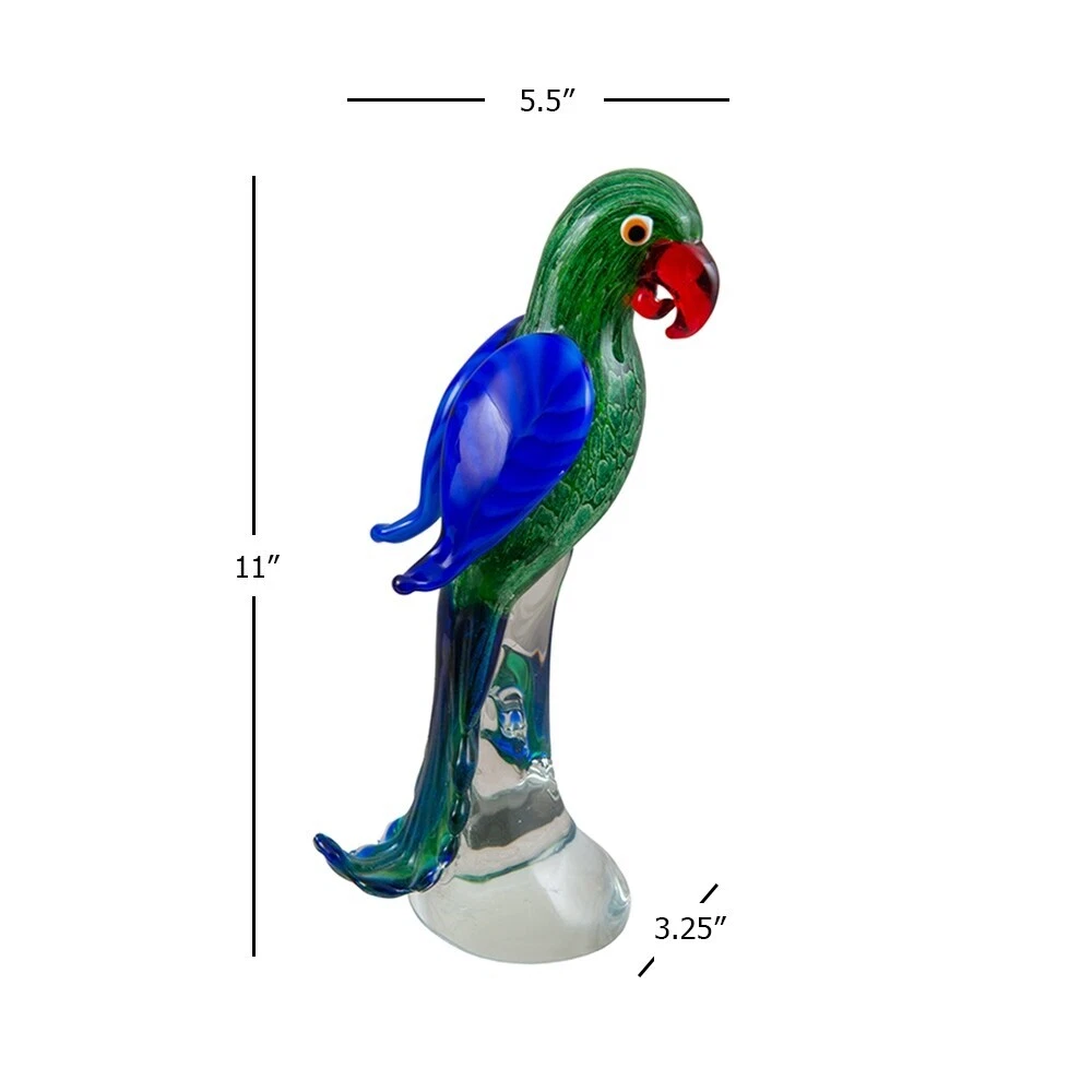 Add a colorful touch of the tropics to any décor when you choose our Zuma Blue Parrot Handcrafted Art Glass Art Glass Figurine. This happy looking little fellow depicts a vividly colored parrot shown sitting on his perch. His head and body are a verdant shade of green, while his wings are a deep azure blue. His inquisitive face features wide set eyes with black pupils along with a large curved amber beak. Zuma is handcrafted using Favrile art glass, which was first developed by L.C. Tiffany in the late Nineteenth Century. The Favrile process can cause slight variations in color and texture, which means that no 2 pieces are exactly alike. A saturated pop of color on a bookcase, mantle, or curio shelf, our Zuma Blue Parrot Handcrafted Art Glass Figurine is destined to become a treasured Free Shipping Over $49.99* Details Zuma Parrot Handcrafted Art Glass Figurine Product Description: Add a colorful touch of the tropics to any décor when you choose our Zuma Blue Parrot Handcrafted Art Glass Art Glass Figurine. This happy looking little fellow depicts a vividly colored parrot shown sitting on his perch. His head and body are a verdant shade of green, while his wings are a deep azure blue. His inquisitive face features wide set eyes with black pupils along with a large curved amber beak. Zuma is handcrafted using Favrile art glass, which was first developed by L.C. Tiffany in the late Nineteenth Century. The Favrile process can cause slight variations in color and texture, which means that no 2 pieces are exactly alike. A saturated pop of color on a bookcase, mantle, or curio shelf, our Zuma Blue Parrot Handcrafted Art Glass Figurine is destined to become a treasured family favorite to be enjoyed for many years to come. NOTEDue to the nature of handmade art glass, colors, sizes and patterns may vary slightly..