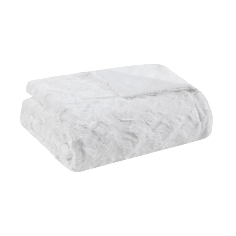 The Zuri oversized throw features a luxuriously soft faux fur and reverses to a solid faux mink. This faux fur throw is the perfect modern update and adds a glamorous accent to your home. This throw is machine washable for easy care and OEKO-TEX certified, meaning it does not contain any harmful substances or chemicals to ensure quality comfort and wellness. The Zuri Blanket features a luxuriously soft faux fur and reverses to a solid luxe microfur. A warm blanket and a glamorous accent to your home with ’s Zuri Oversized Faux Fur Throw. Exceptionally soft faux fur mimics the warmth and texture of real fur, while the marble print gives the throw a beautifully stunning look. 1 Throw: 60"W x 70"L Care Instructions: Machine Wash. Minor shedding is expected with faux fur material and should subside after 3-4 washes