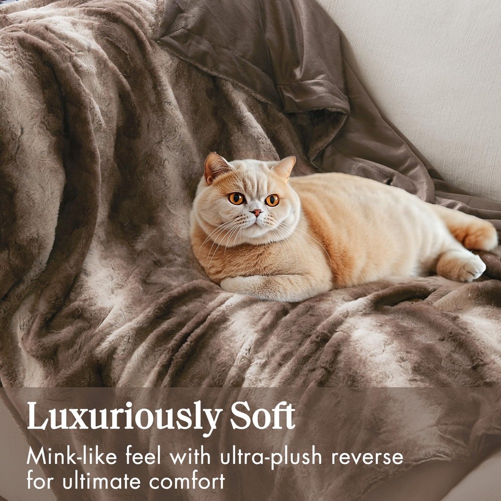 The Zuri Blanket features a luxuriously soft faux fur and reverses to a solid luxe microfur. A warm blanket and a glamorous accent to your home with ’s Zuri Oversized Faux Fur Throw. Exceptionally soft faux fur mimics the warmth and texture of real fur, while the marble print gives the throw a beautifully stunning look. 1 Throw: 60"W x 70"L Care instructions: machine washable. Minor shedding is expected with faux fur material and should subside after 3-4 washes