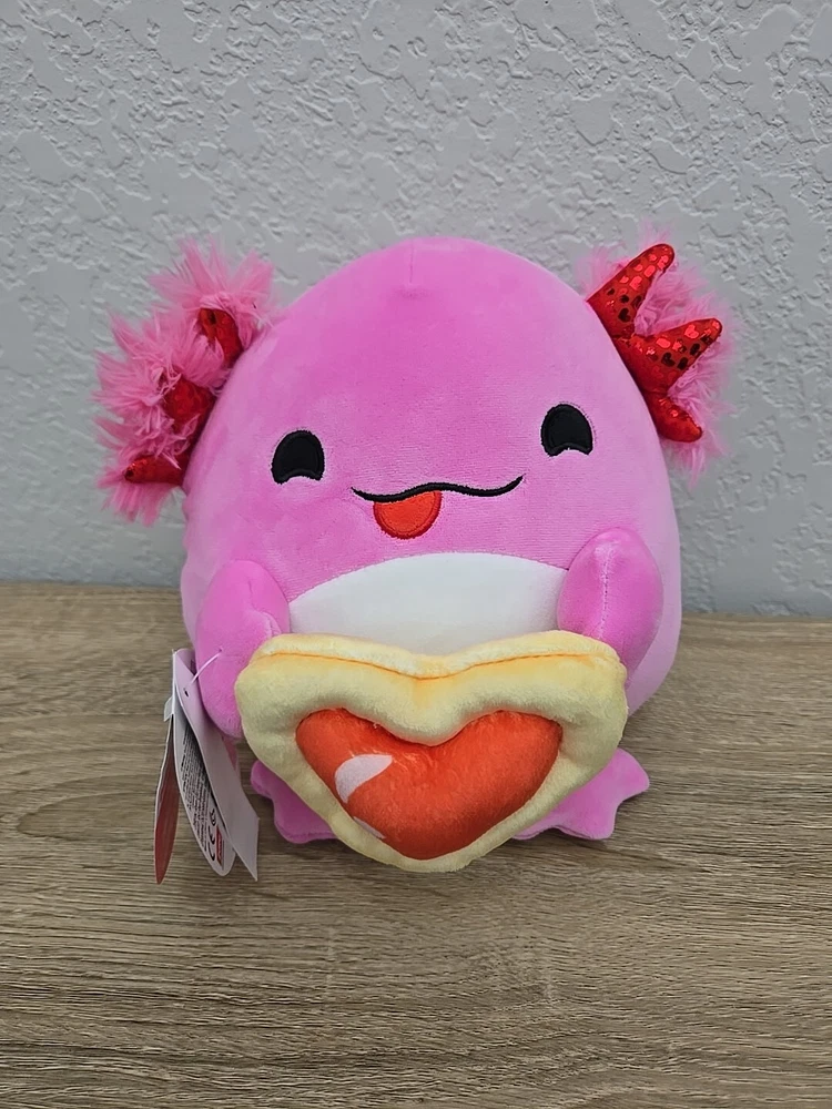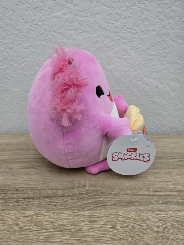 *Free shipping with USPS Ground Advantage. Ships ASAP. Packaged with care. Smoke-free home.* This is a Zuru Snackles plush toy featuring Darcy the Axolotl holding a cookie, measuring approximately 8 inches. It is designed with a Valentine's Day theme in pink color and has sequin detail. The plush is new with tags, hand washable, and suitable for ages 3 and up. It is a collectible item from the Snackles character family, made in China.