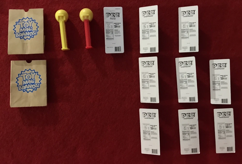 Zuru Surprise Toy MINI BRANDS Pez Lot of 13 Heart Eye Dispenser Candy Pack Cards Includes: (1) Heart Eyes Pez Dispenser (1) Smiley Pez Dispenser (1) Carded Candy Pack (8) Carded Pez Dispenser Packs + (2) Toy Mini Brands! Brown Paper Bags Please see pics for details and overall condition. Thanks for looking and supporting our small business. We are blessed to be working from home, with the best coworkers we could ever ask for, each other! ❤️With love and blessings, (-: Dee & Chi :-)