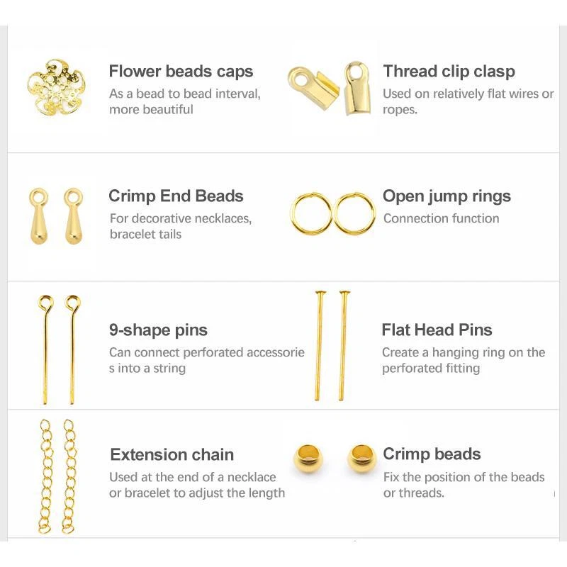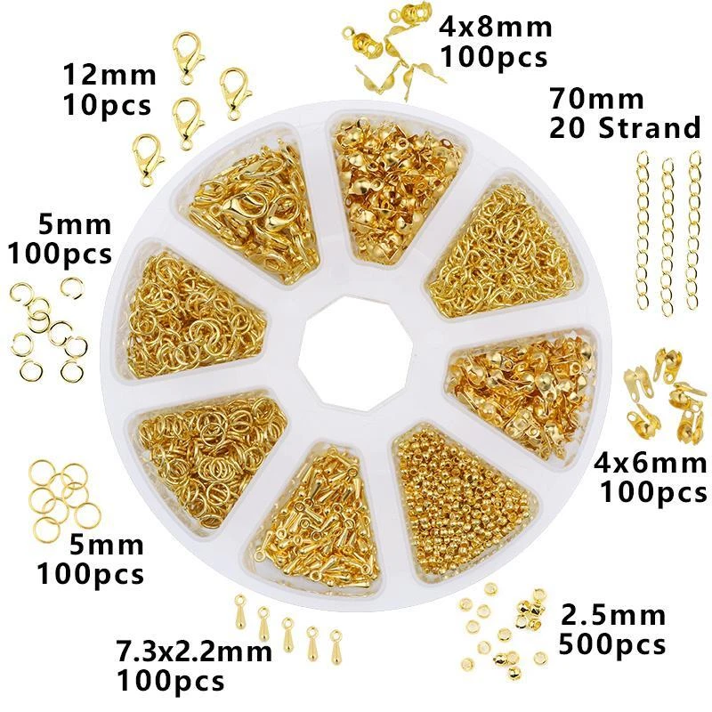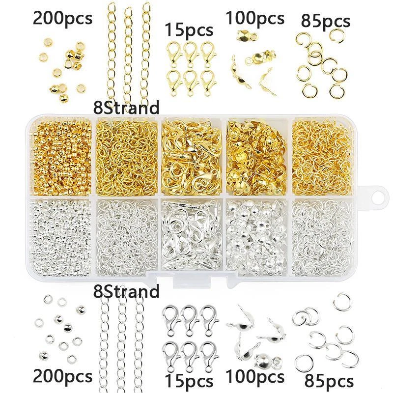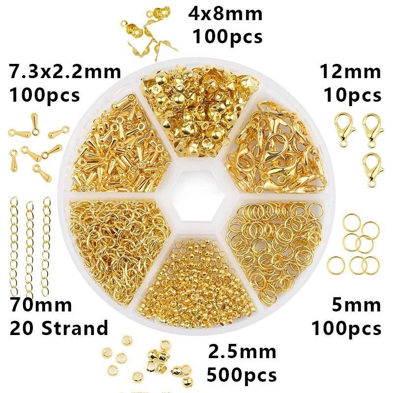 Free and fast shipping, Shipping time takes up to 1-7 Business Days 30 DAYS RETURN EASY PAYMENT via Credit Card, Google Pay, PayPal, PayPal Credit... a Set Alloy Accessories Jewelry Findings Earring Making Kit Lobster Clasp Open J VARIETY SIZES The jewelry making supplies contains a great selection of sizes jewelry accessories for jewelry construction. They are the most popular sizes that are ideal for making my bracelets, repair necklaces and jewelry related projects HELPFUL ASSEMBLY TOOLS Jewelry tools set with a nose pliers ,a tweezer and a bonus jump ring opener. The brass ring makes opening and closing the rings so much easier than holding two pliers. You can hold your chain with the same hand you have the ring tool on, and your pliers in the other hand and assemble away with ease NICE CONTAINER BOX All jewelry accessories are packed in a handy container to keep them separate and easy to find. The storage container is designed with the lids that can be opened and snapped shut individually as well as all together. PERFECT FOR JEWELRY MAKING The silver and gold open jump rings and clasps set are suitable for many projects like linking small chain and earrings, making bracelets, repair necklaces, making chain mail and other jewelry related projects REVIEWS The product came very well packaged. I'm very happy. thank you for everything. Seller strongly recommended. This is great! I definitely recommend! Product looks amazing Delivery was fast. Excellent seller, great communication. I advise everyone to buy it!