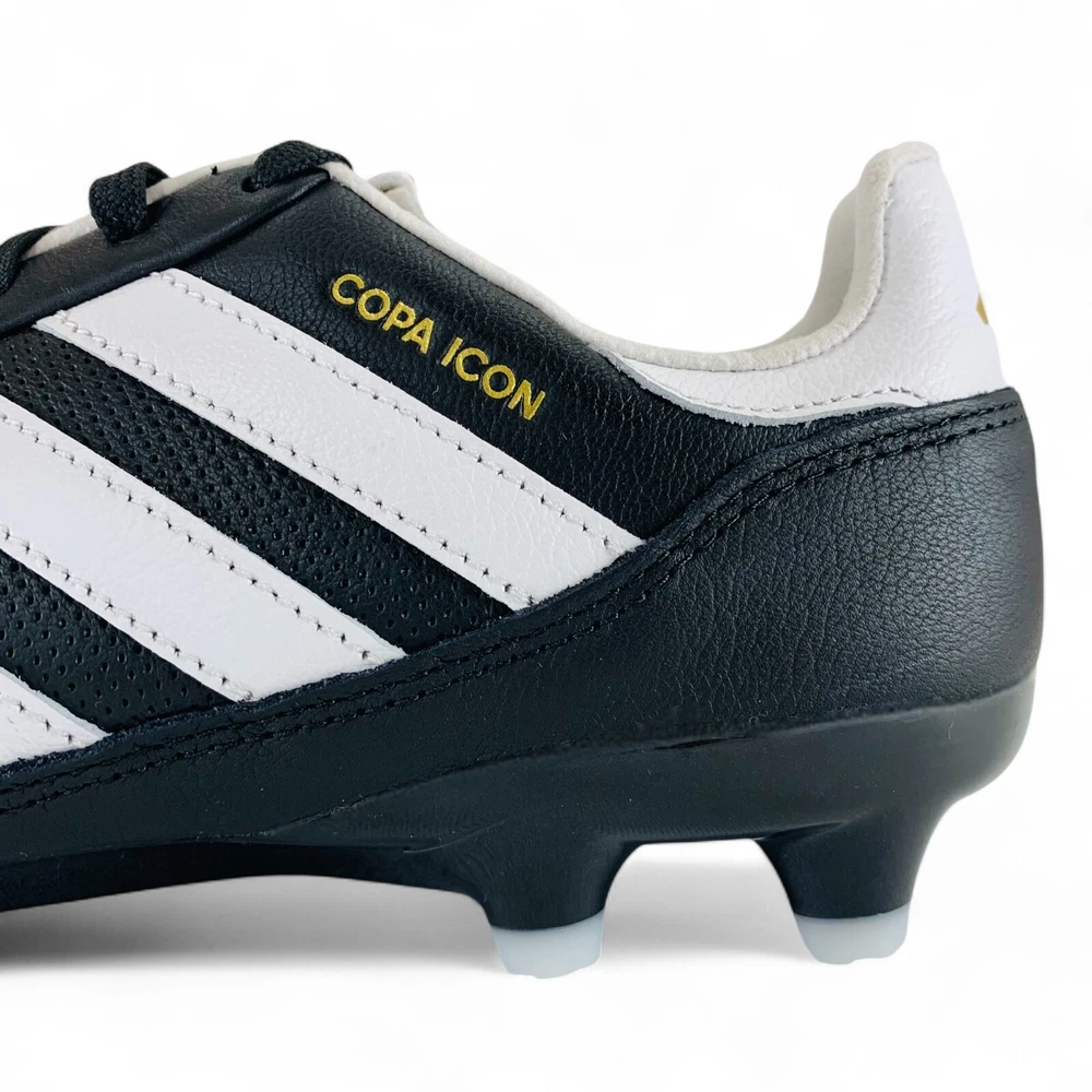 adidas Copa Icon FG Core Black White Men's Soccer Cleats HQ1033 Unleash your speed with the adidas Copa Icon FG soccer cleat. As an ode to adidas history and lore, the Copa Icon has been created as a classic modern soccer cleat. The upper is made from premium cow leather, with stitching support to create a triple play of softness, flexibility and stability. A PU and Microfiber suede tongue allows for extra comfort and zero distractions on the pitch. The outsole and stud configuration are optimized for dominating play on firm ground. Elevate your soccer game and buy your very own pair of these men's cleats today! Product Condition These shoes are brand new and include their original shoe box, unless otherwise noted. The shoe box may have minor damage. This is a 100% authentic product, guaranteed or your money back. Sizing All size options provided in this listing are U.S. men's shoe sizes. Please reference the chart appearing in our product images to find your approximate size conversion (e.g. UK sizes, EU sizes, etc.). More Details Suggested Retail Price: $180 Brand: adidas Model: Copa Icon FG Core Black White Style Code: HQ1033 Gender (for sizing): Men Age: Adult Main Color: Black Customized: No Closure: Lace-up Shoe Shaft Style: Low-top Great For: Soccer, Football, Outdoor Sports