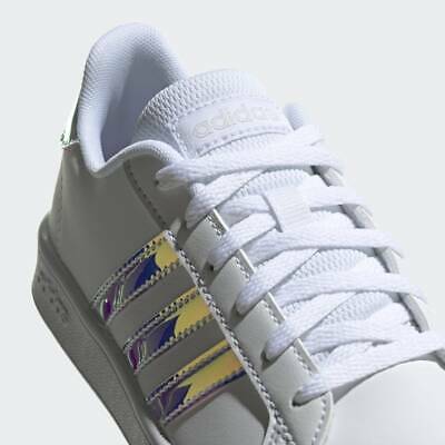 adidas adidas Grand Court Shoes Kids' Features of the adidas Grand Court Shoes Kids' Imported Lace closure Regular fit Size Chart: Description of the adidas Grand Court Shoes Kids': They'll show off their moves with retro '70s tennis style. These kids' shoes cushion little feet in soft comfort from the classroom to the playground. 3-Stripes on the upper put their adidas style front and center. Shipping Warehouse location Spartanburg, SC. FREE SHIPPING with Standard Shipping (FedEx Ground or FedEx Home Delivery) Estimated delivery: Within 10 business days of receiving a cleared payment Return Policy FREE 30 DAY RETURNS Refund will be given as Money Back Seller Pays for return Shipping Shop Safe Guarantee We offer caring customer service and no hassle refunds. If for any reason you feel that you cannot leave positive feedback and 5 star ratings, please contact us within 30 days from the date of order for a return or refund. We are not satisfied until you are. About Us ADIDAS SPORT: adidas Sport is mainly targeting competitive sports. The division's focus is primarily on innovation and technology. Target consumers range from sports participants at the highest level to those inspired by sport. Everything at adidas reflects the spirit of our founder Adi Dassler. His main objective back in those days already was to make athletes better, with innovation at the heart of all adidas Sport products. To underline our credibility as the multi-sport specialist and leverage brand strength, there is hardly any category that we don't produce products for. adidas is everywhere where the best meet the best, such as the FIFA World Cup, or the Olympic Games, but also everywhere else around the globe where sports are simply played, watched, enjoyed and celebrated. However, we are not just designing products for all kinds of sports. We are designing products for athletes. Athletes always strive for their personal best. Athletes find inspiration in sports no matter what they do. We help them to achieve their peak performance by making them faster, stronger, smarter and cooler. ADIDAS ORIGINALS: No matter how serious you are about sports, a sporting lifestyle does not end in the locker room. This is why we have adidas Originals, our sub-brand that brings our iconic DNA from the courts to the streets. For well over a decade, it has been celebrating originality in a globally trendsetting way and, as the first brand leveraging its sports assets in the lifestyle area, it is regarded as a legitimate sports lifestyle brand. To ensure sustainable success, adidas Originals has to keep up to date with and set trends as well as remain committed to serving consumer groups who are constantly looking for more options to express their individuality.