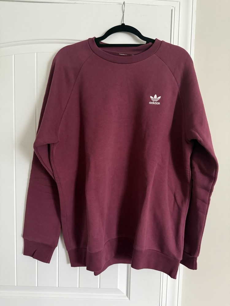 The adidas Originals Men's Adicolor Essentials Trefoil Crewneck Sweatshirt in Crimson is a stylish and comfortable pullover sweatshirt perfect for the fall and winter seasons. Made from a blend of cotton and fleece, this heavyweight sweatshirt features a classic crewneck and long sleeves for added warmth. The bold red color adds a pop of color to any outfit, making it a versatile and trendy addition to any man's wardrobe. Perfect for casual wear or as an activewear piece, this adidas sweatshirt is sure to keep you cozy and stylish.