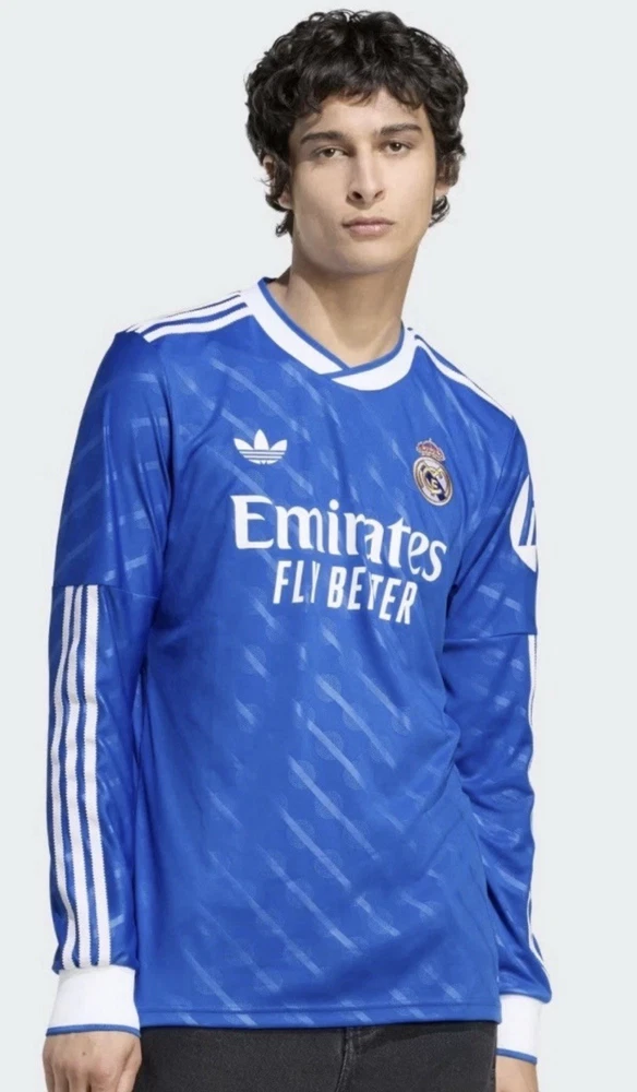adidas Real Madrid Men’s 25/26 Long Sleeve Third Jersey Blue Size M JW4054 NWT