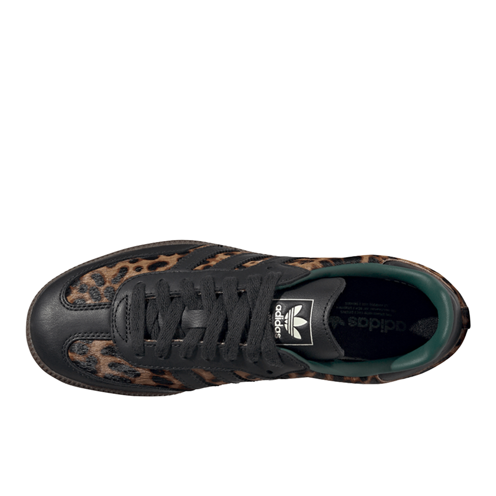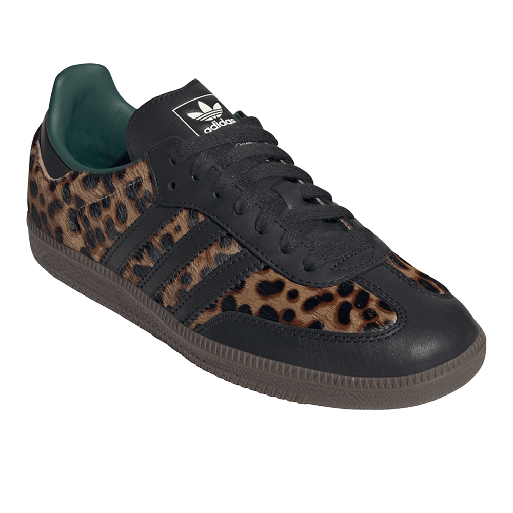 Samba OG Lace Up Sneakers Product Details Regular fit Lace closure Leather upper Textile lining Rubber outsole Color: Core Black/Collegiate Green Long before the adidas Samba shoes took to the streets, they left their mark on the indoor football pitch. Their smooth leather upper, nubuck toe cap and reinforced rubber sole were designed with agility and control in mind. Though times have changed, their essence remains. Today, they carry on the legacy as an iconic street style, ready for whatever your day brings. Molded into their design is decades of history, keeping the spirit of the Trefoil alive. Additional Details Manufacturer Color: Core Black/Collegiate Green Color: Black Occasion: Casual Gender: Womens Age: Adult Brand: