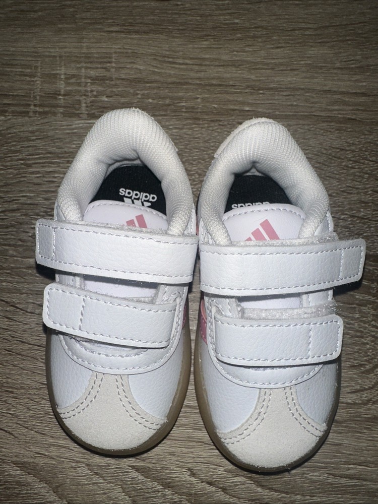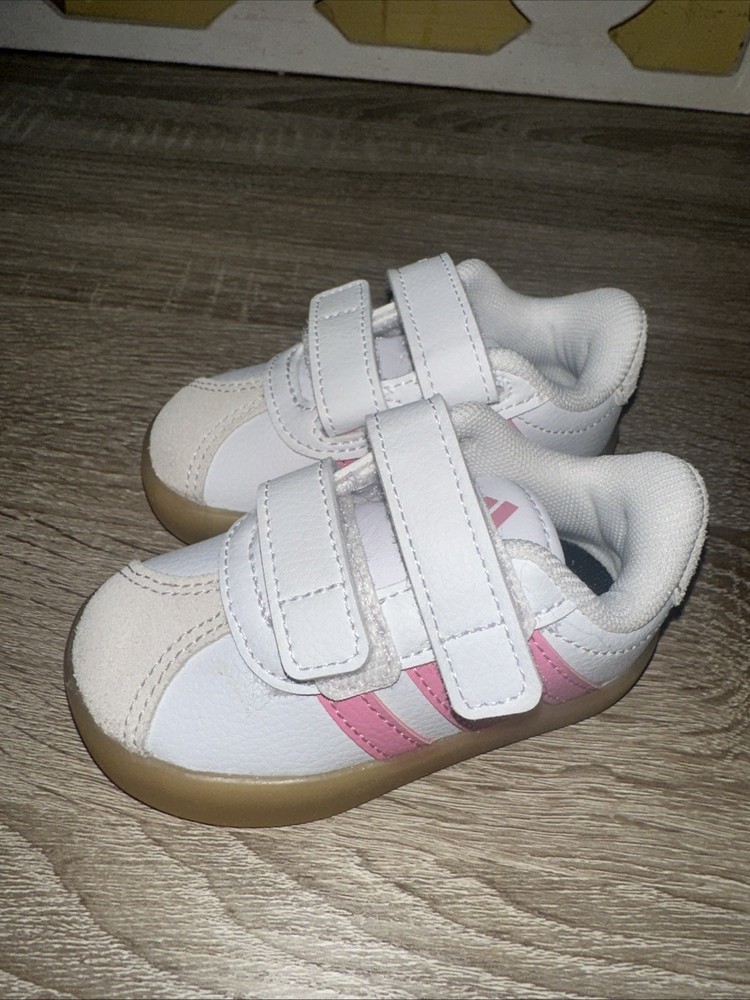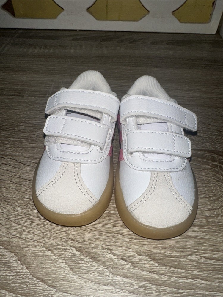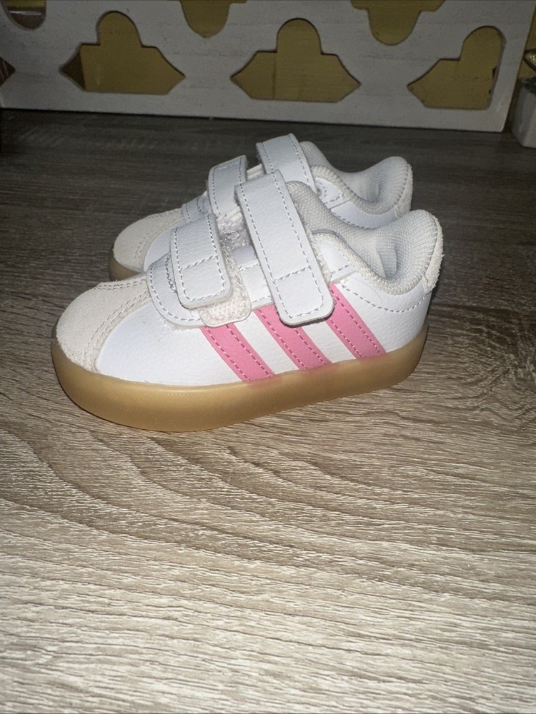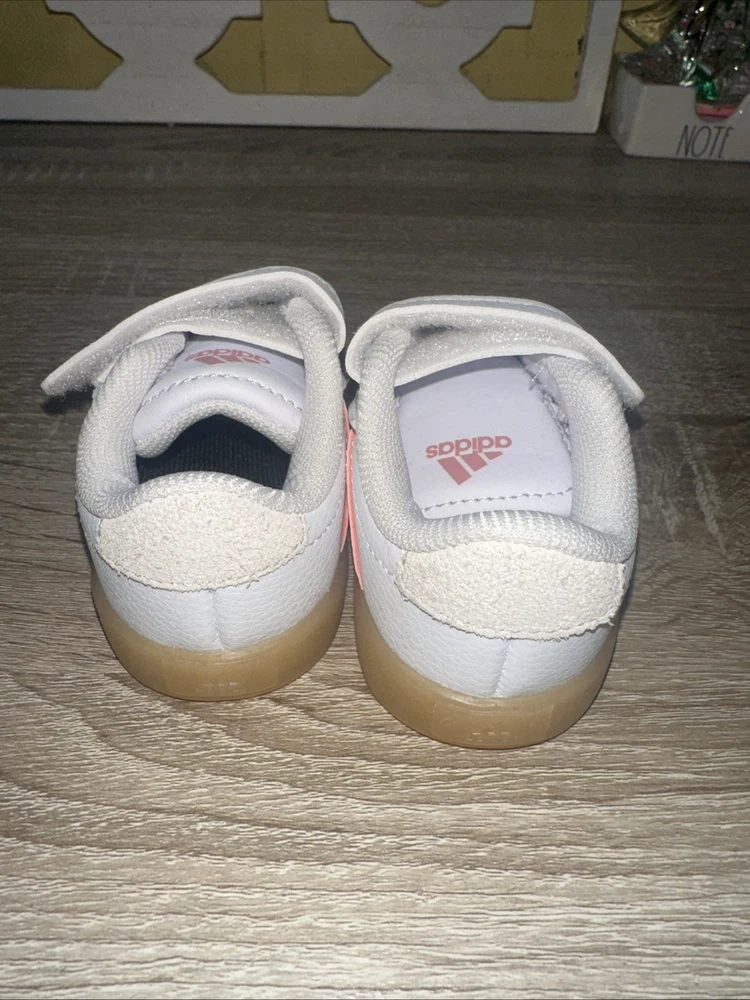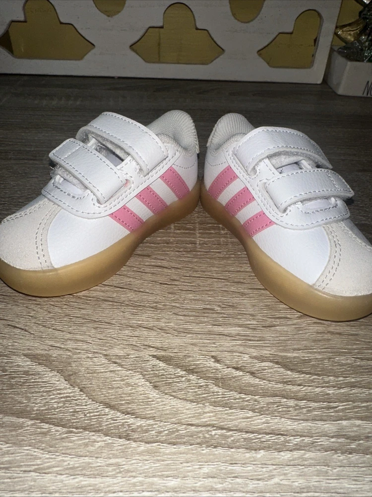 adidas Toddler Girls VL Court 3.0 sneakers in white with pink stripes Size 4 worn 1x