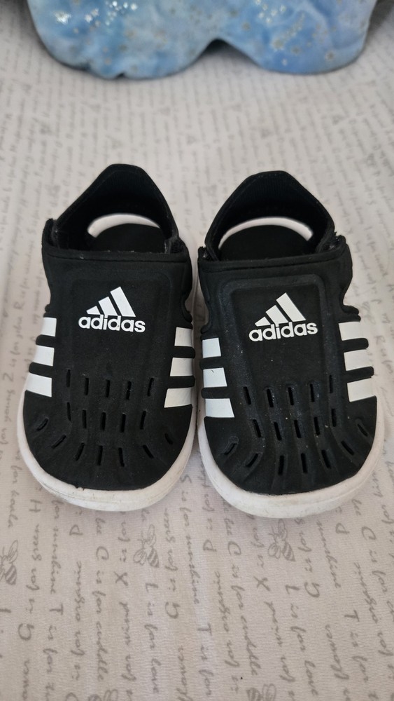 adidas Unisex Kids Slip-On Black Synthetic Sandals 4K Logo Strap Lightweight