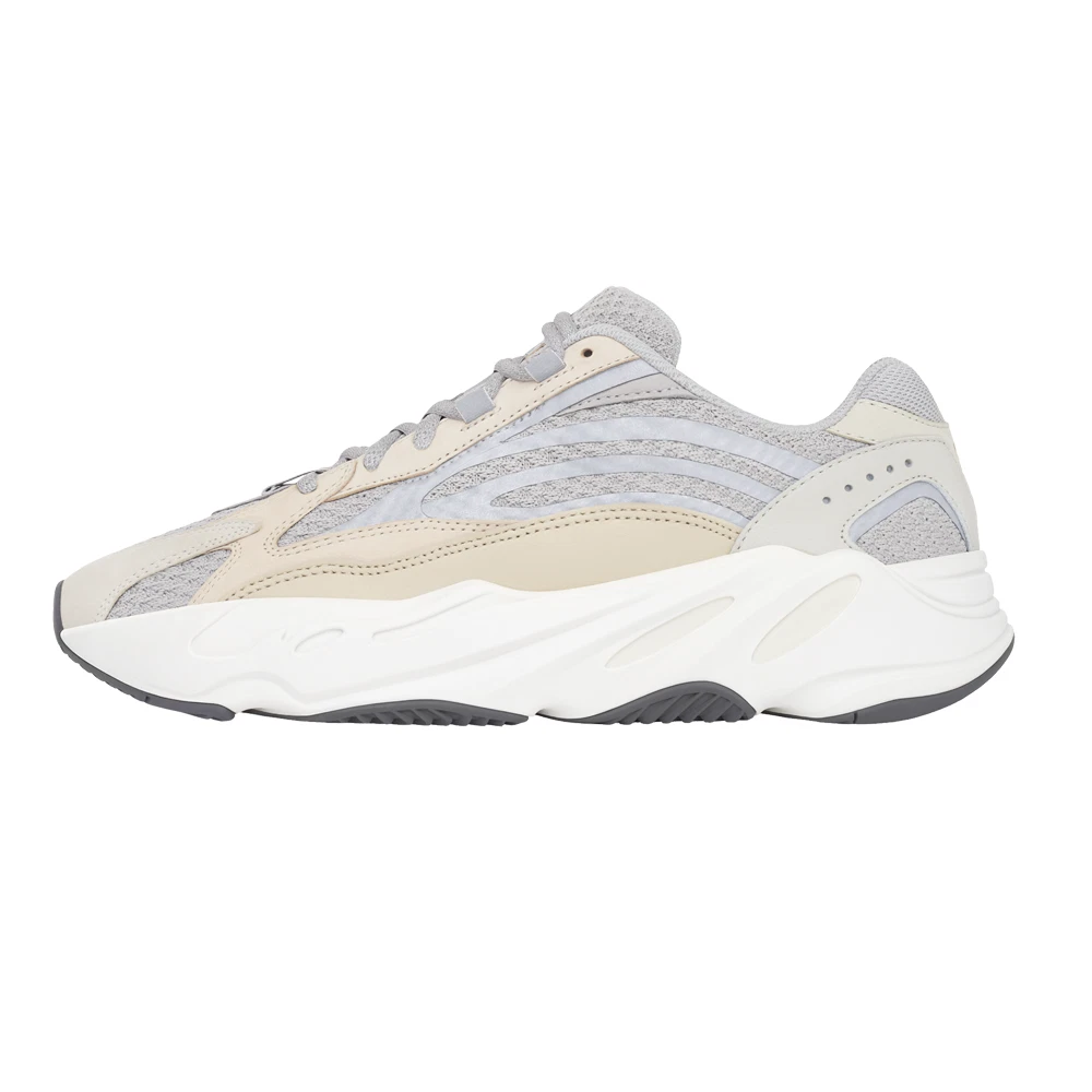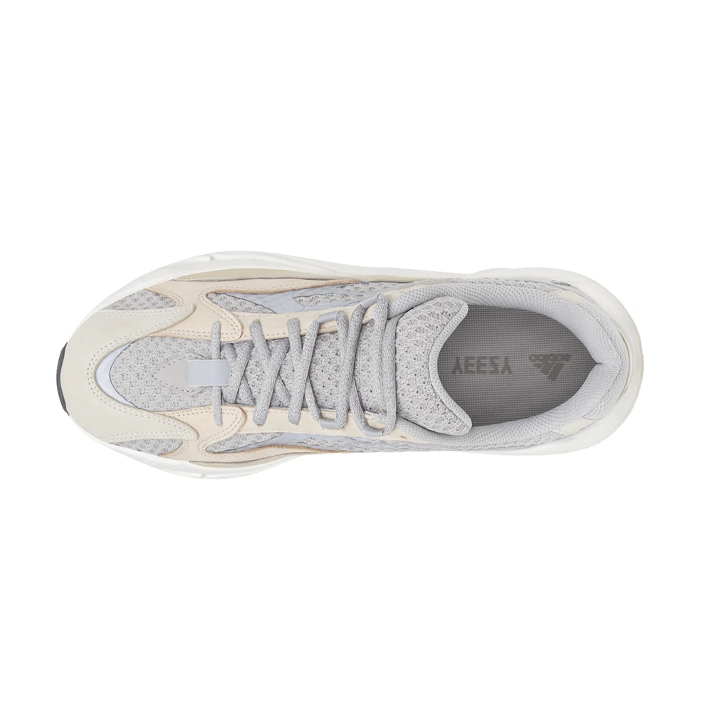 Adidas Yeezy Boost 700 V2 Lace Up Sneakers Product Details Textile upper with leather and suede overlays Lace up closure Ortholite sockliner Boost midsole Rubber outsole The adidas Yeezy Boost 700 V2 brings back a neutral colorway of the lifestyle running shoe. The sneaker features a greyscale design, highlighted by a textile base with leather and suede overlays. Dual adidas and Yeezy branding adorns the Ortholite sockliner. Responsive cushioning is provided by a full-length Boost midsole, housed inside a sculpted foam carrier in a dark grey finish. A gum rubber outsole provides grippy traction underfoot. Additional Details Color: Beige Occasion: Casual Gender: Mens Age: Adult Brand: