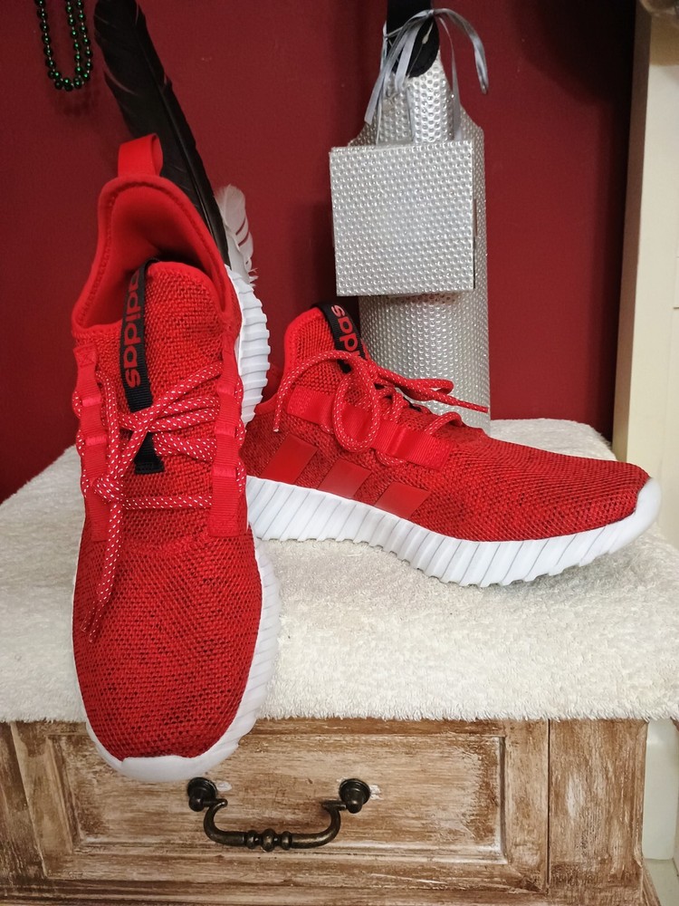 These adidasMen's Kaptir 3.0 sneakers in size 11.5 feature a solid red and black Tweed color with a lace-up closure. They are designed for casual wear and have a mesh upper material with a rubber outsole. The sneakers are from the adidas 3.0 brand and are lined for comfort. The model is suitable for activities like walking, cycling, cross training, crossfit, and running.