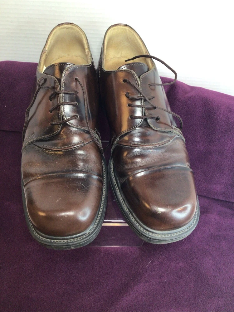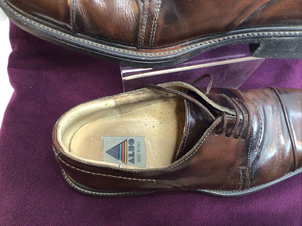 Elevate your style with these Aldo men's dress shoes in a rich brown color. Crafted with quality materials, these shoes are perfect for any formal occasion. With a comfortable fit and a size of 10, these shoes are made for men who want to look sharp and feel comfortable at the same time. The shoes feature a classic design that complements any outfit, making them a versatile addition to your wardrobe. Whether you're attending a wedding or a business meeting, these Aldo men's dress shoes are a must-have. Light wear. Please look at the pictures closely, as these are the items that you will receive.