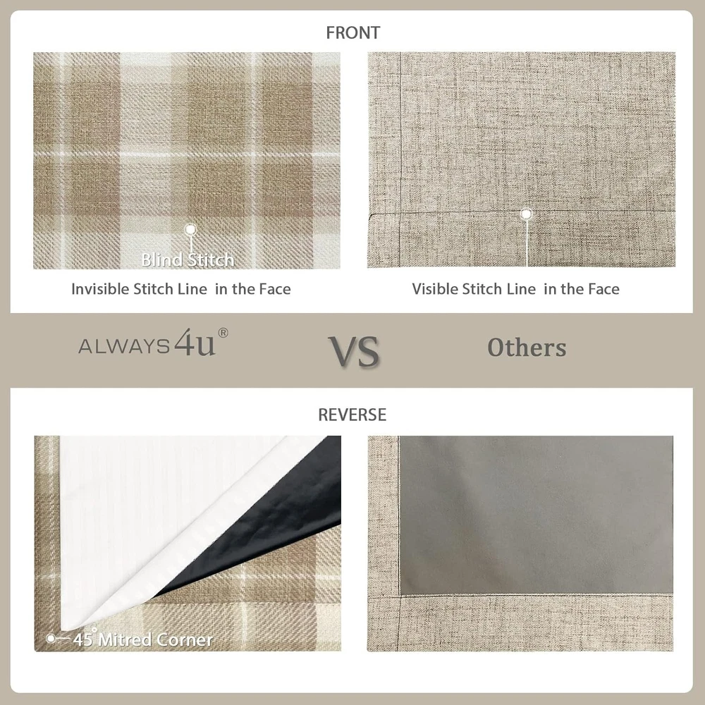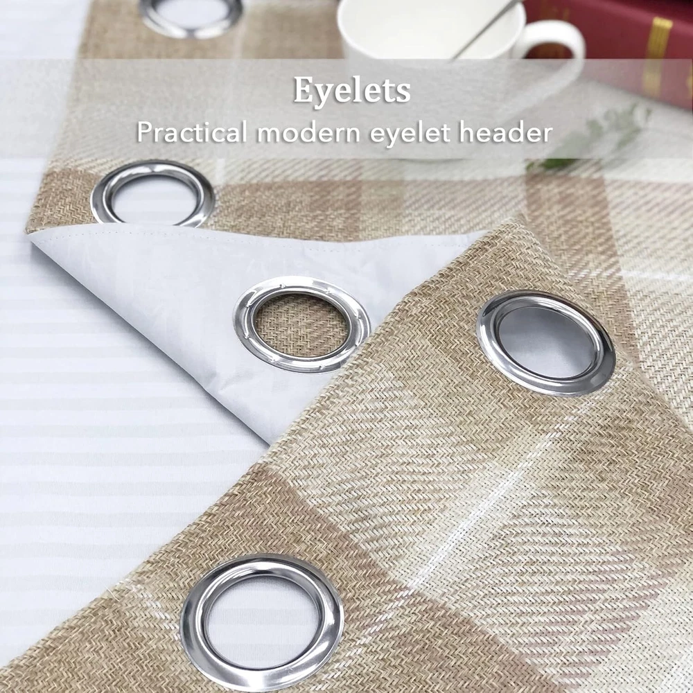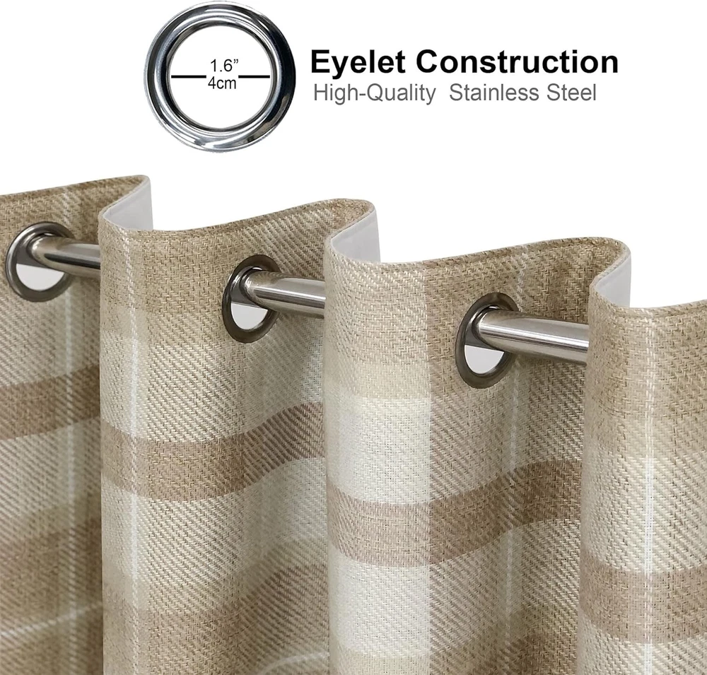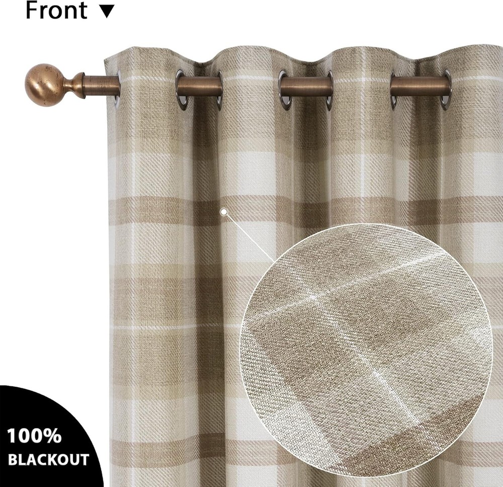 About this item Elegant Design:Plaid curtain contemporary design.This country checked pattern will enhance any interior.Each pack contacts 2 panels eyelet curtains,woolen look check curtains,classic and fashion.bedroom accessories;eyelet curtains;gingham curtains. PLAID PATTERN:Features a modern and stylish check design,these eyelet blackout curtains are sold ready to hang,in any bedroom,living room or any room that need a new window treatment. Due to the different measurement methods and the production process deviation, the size will be ±1-1.5 inches. Quality Material:Our fabrics are durable,fade-resistant,wrinkleless,and drapes nicely.The threads of the curtains are neatly trimmed by our highly experienced technicians. Tips: If the curtains arrive with some wrinkles due to packaging, steam or iron them on the back of the curtains at a low temperature to achieve a perfectly smooth appearance. Cleaning instruction:Dry cleaning is preferred;if machine washed,please clean separately and wash at a temperature below 30℃ with the gentle cycle minimum speed.