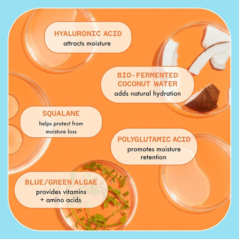 Drench your hair in 3x more hydration* with this leave-in conditioner. Immersed in potent ingredients like squalane, hyaluronic acid, polyglutamic acid, coconut water, and blue algae, this leave-in conditioner provides long-lasting, 72* hour hydration while detangling and reducing frizz.