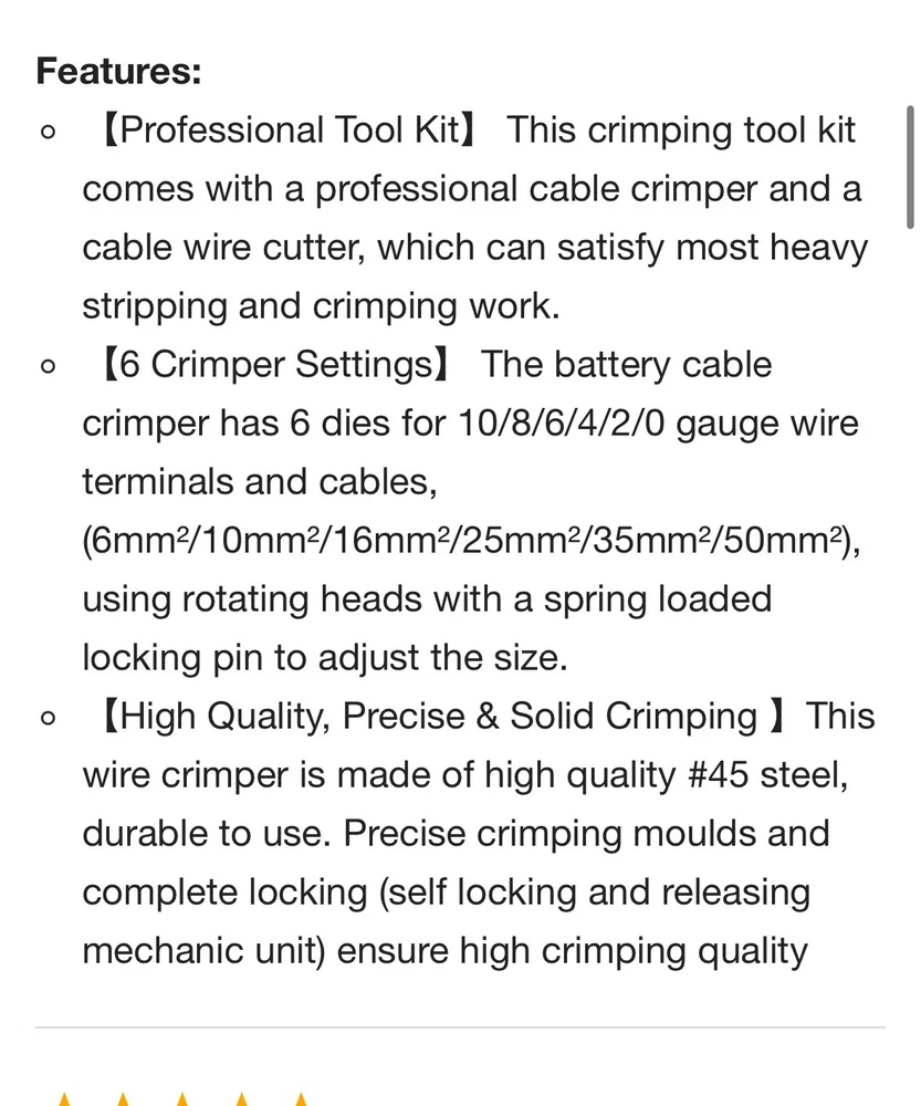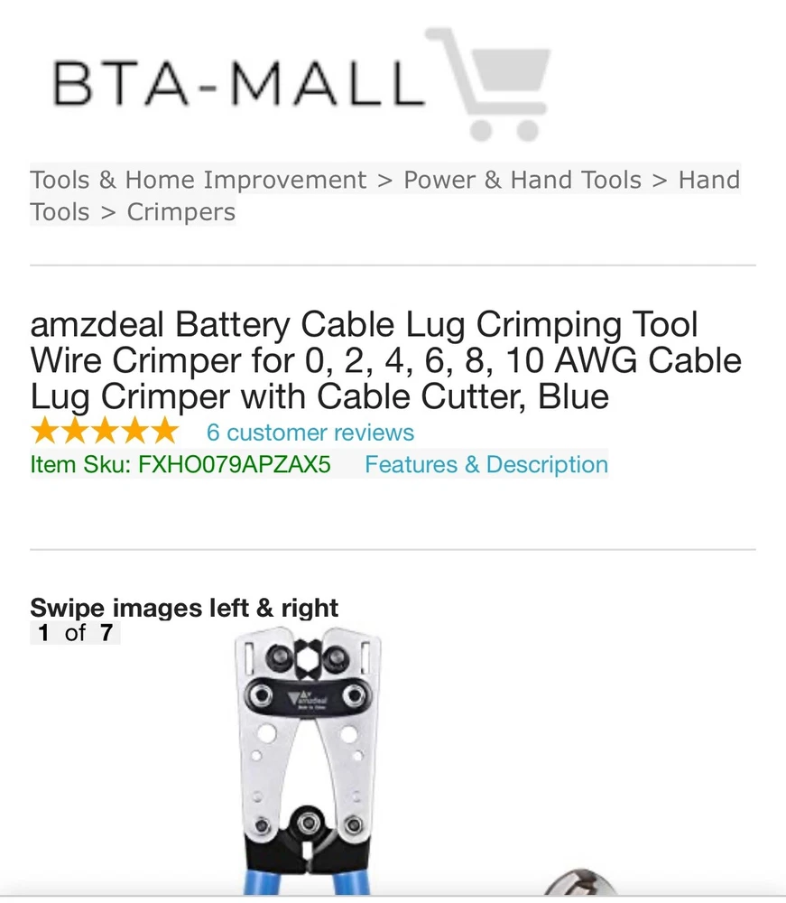 amzdeal Battery Cable Lug Crimping Tool Wire Crimper for 0, 2, 4, 6, 8。 物品状况为New。 运送服务为USPS Ground Advantage。